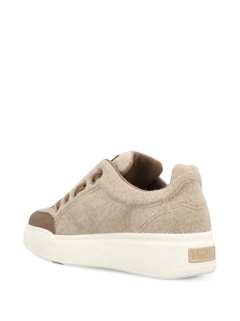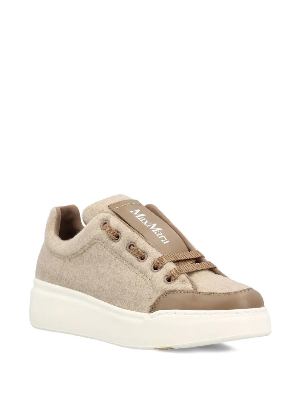 beige cashmere upper leather trim lace-up fastening flat sole logo tab