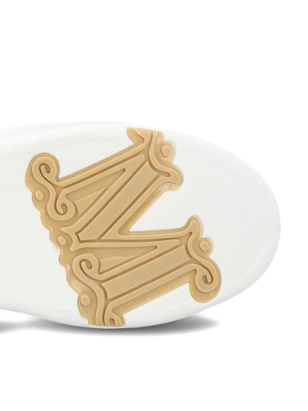 brown leather shearling trim lace-up fastening platform sole logo detail