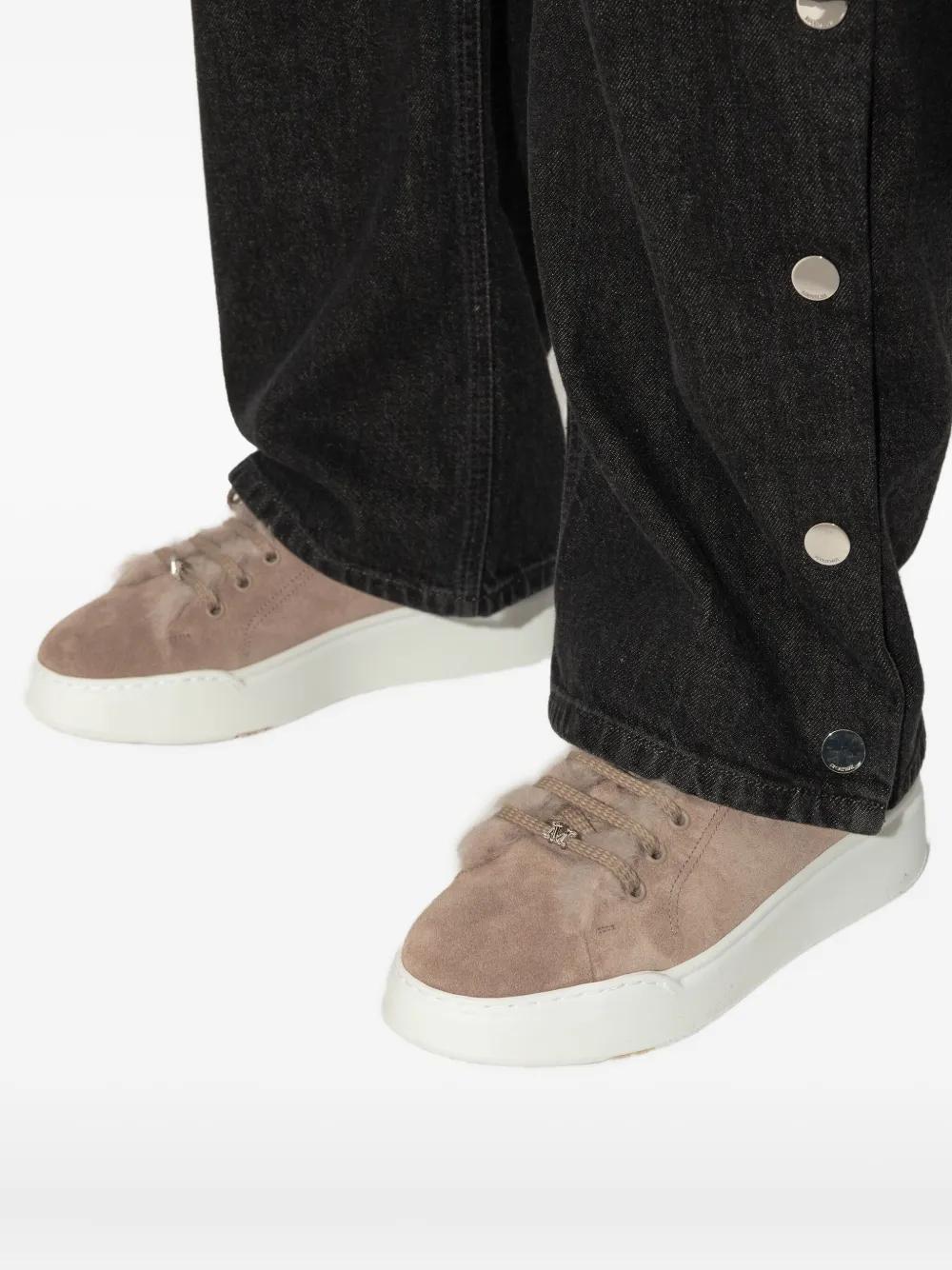 beige textured weave design contrasting rubber sole lace-up closure padded ankle