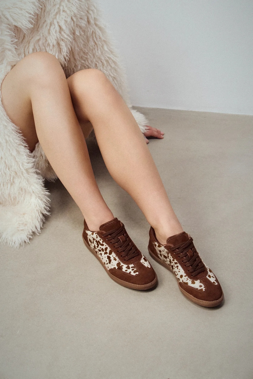 - Okrągły nosek. - Usztywniony zapiętek. - Komfortowa wkładka. - Gumowa podeszwa. - Model wykonany ze skóry zamszowej z włosiem i zwierzęcym printem. - Komfortowe wnętrze. - Model na płaskiej podeszwie. - Długość wkładki wynosi: 24,5 cm. - Wymiary podane dla rozmiaru: 38.