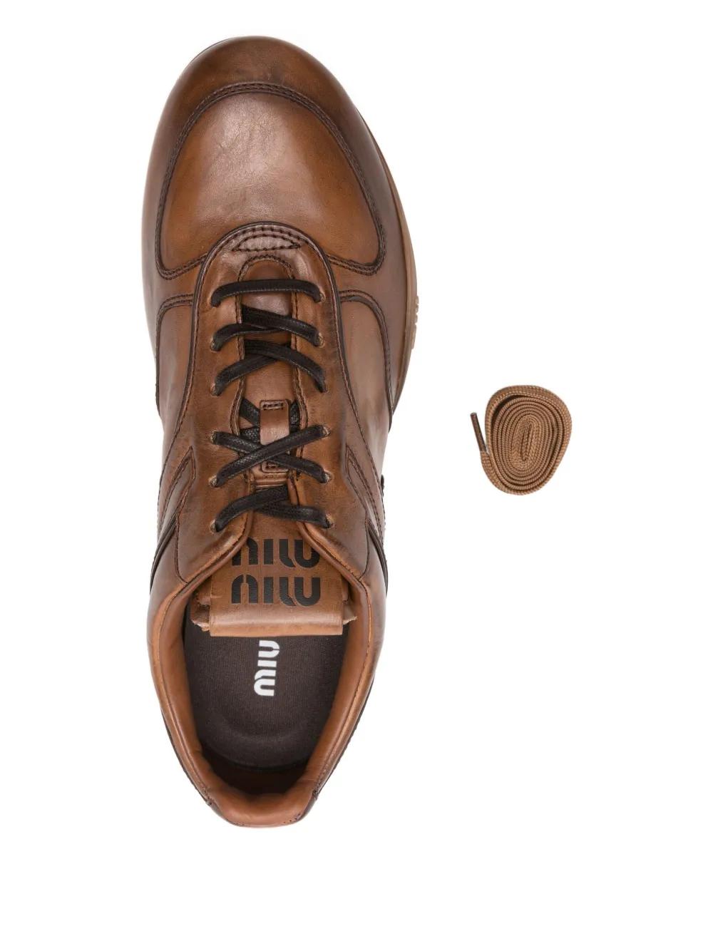 brown leather lace-up fastening rubber sole logo motif This piece comes complete with a protective dust bag.