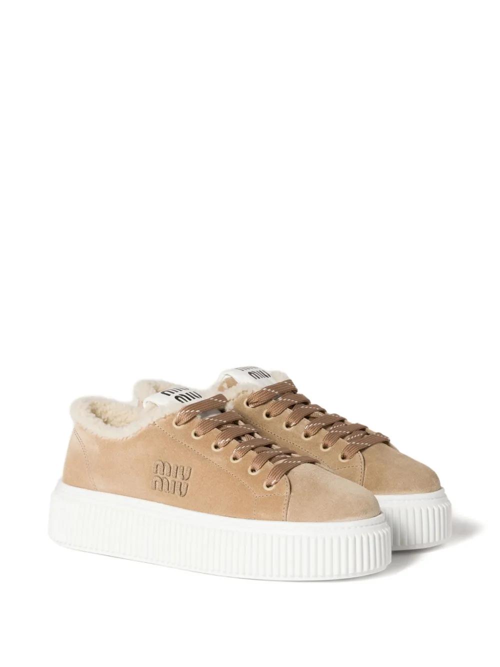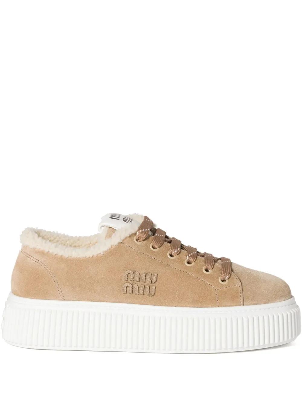 Miu Miu logo-embroidered suede sneakers - Neutrals