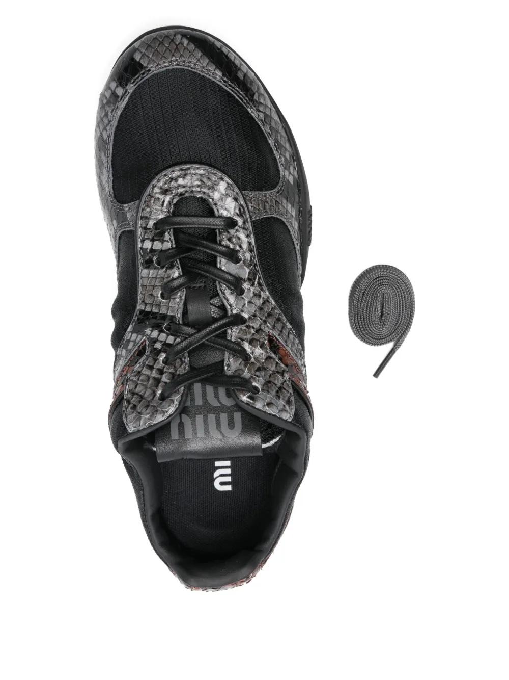 black snakeskin effect panelled design lace-up fastening round toe rubber sole