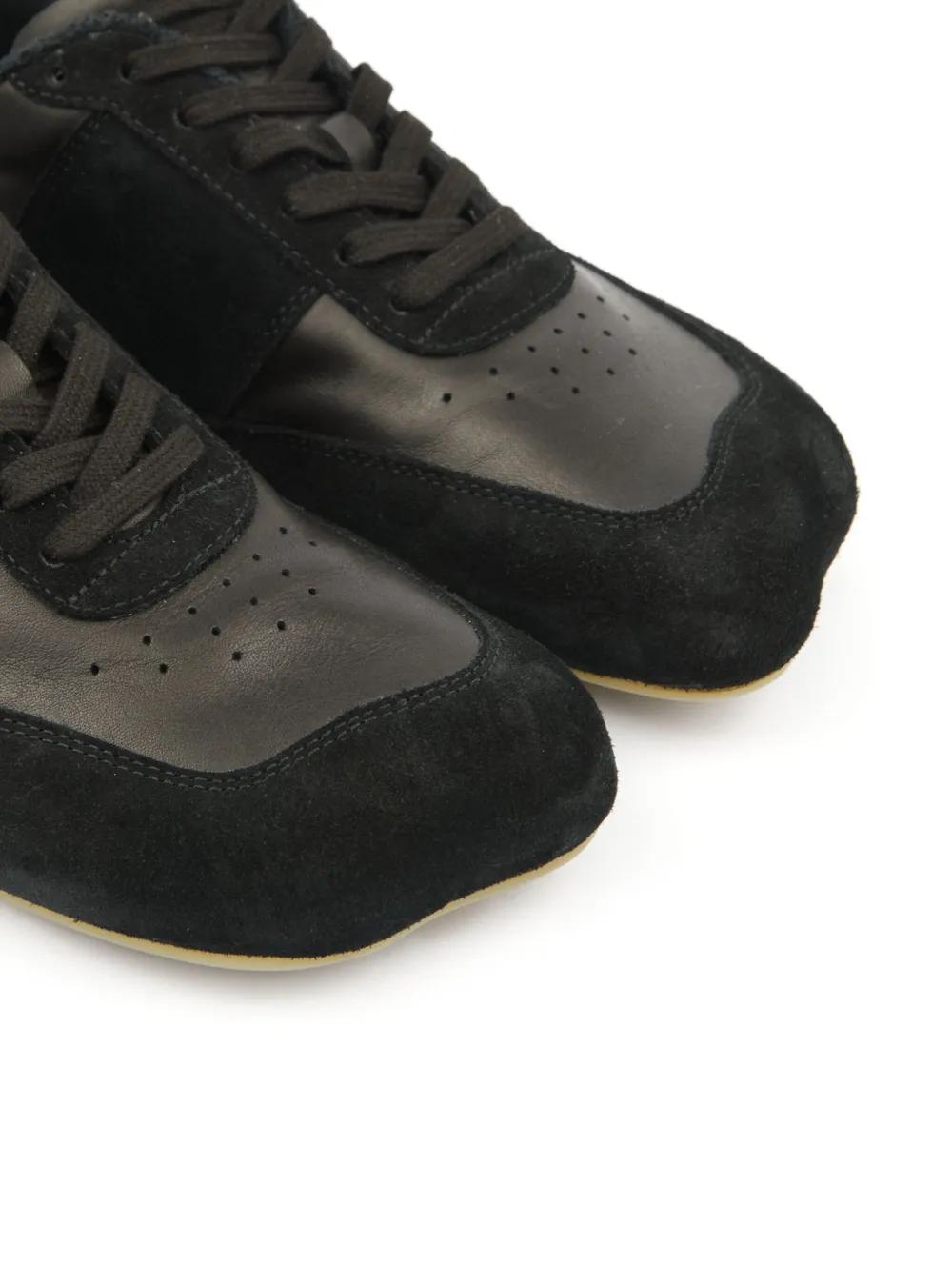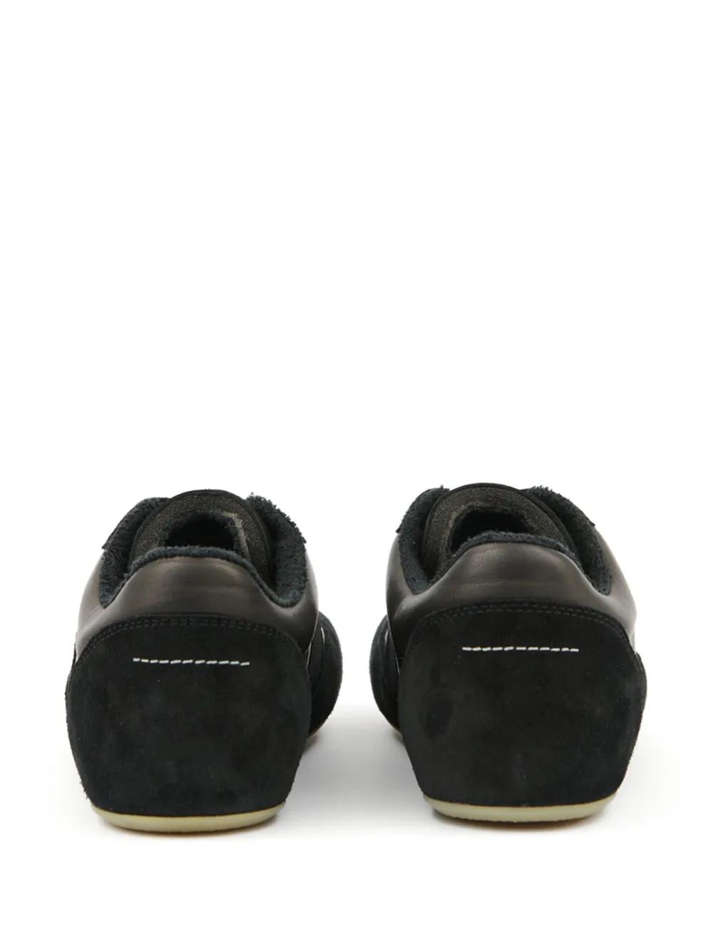 black front lace-up fastening signature numbers motif perforated toebox asymmetric toe
