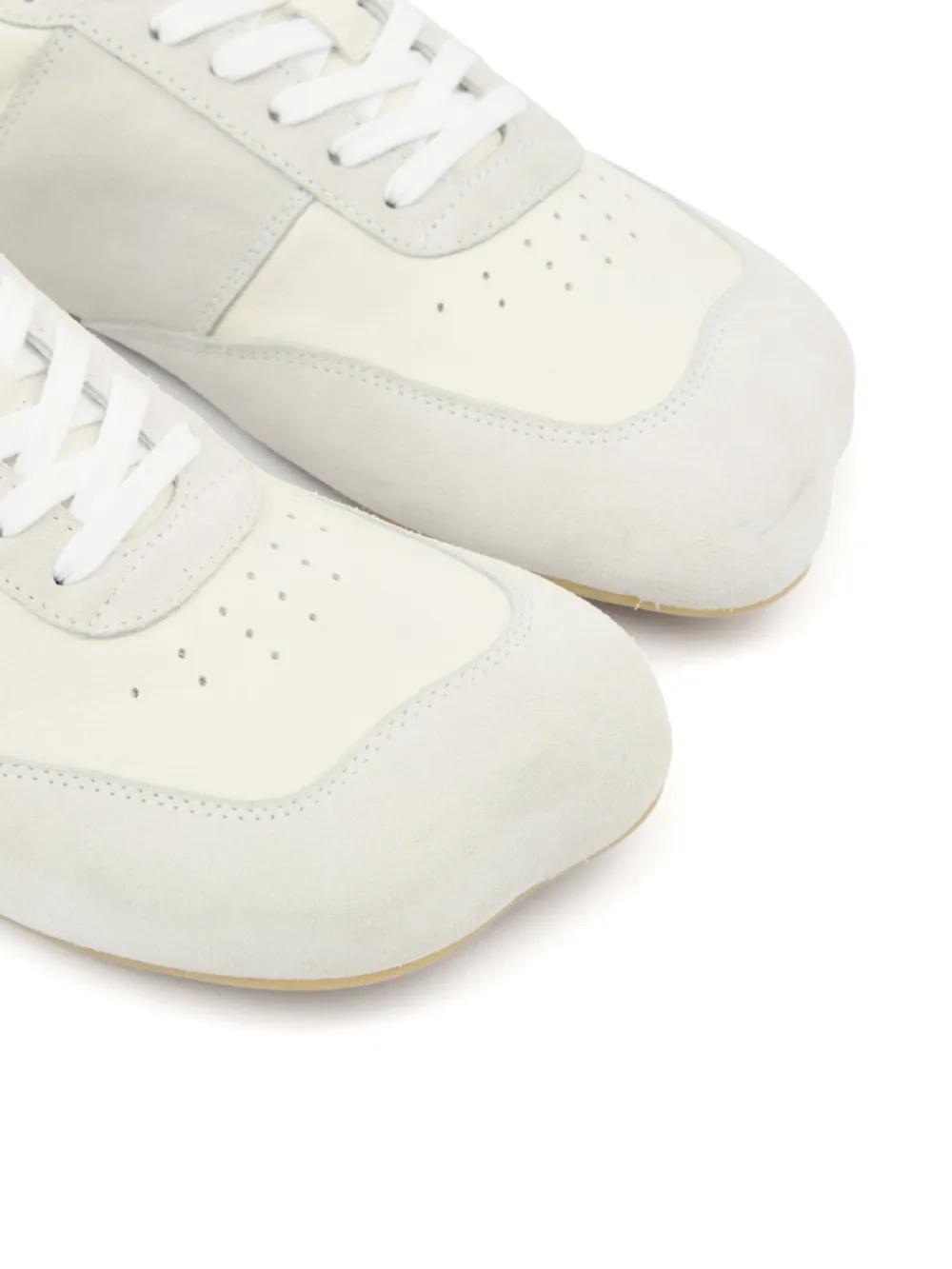 white front lace-up fastening signature numbers motif perforated toebox asymmetric toe