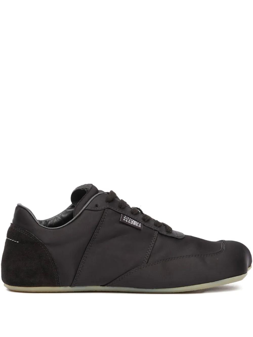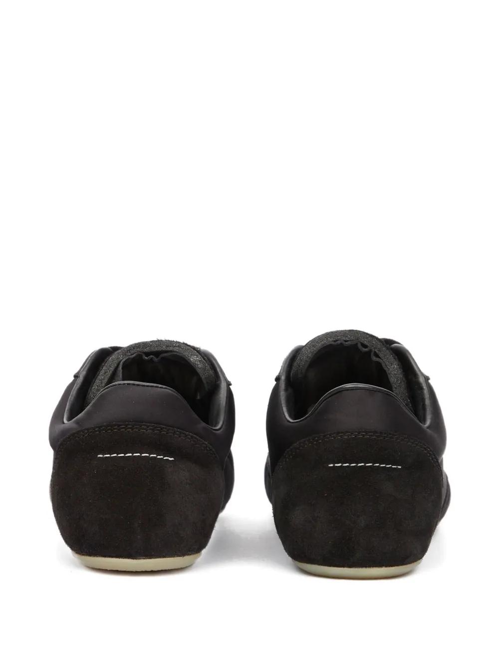 black cotton blend suede panel lace-up fastening rubber sole logo label