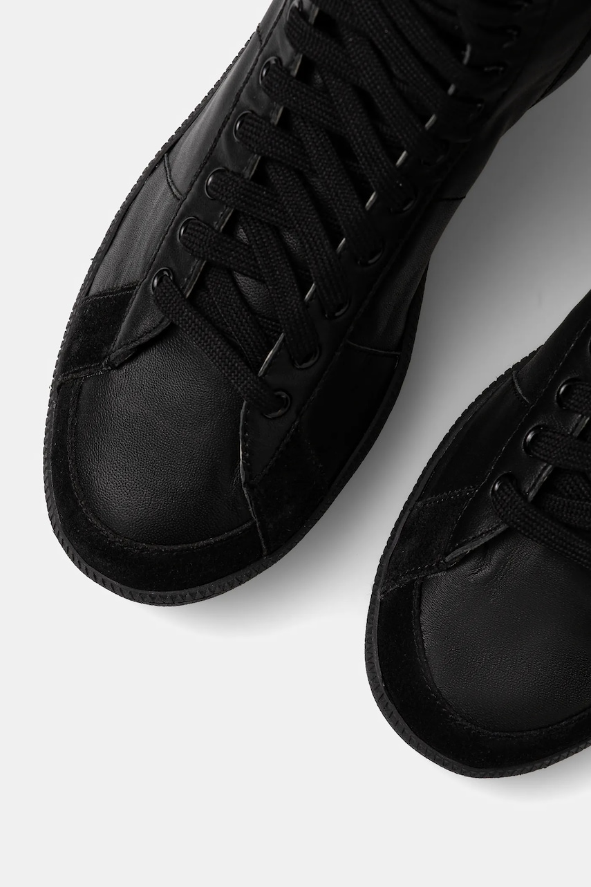 - Sznurowany model z bocznym zapięciem na suwak. - Gumowa podeszwa zewnętrzna jest wytrzymała i odporna na uszkodzenia. - Podwyższona cholewka. - Ozdobne detale. - Skórzane wnętrze.