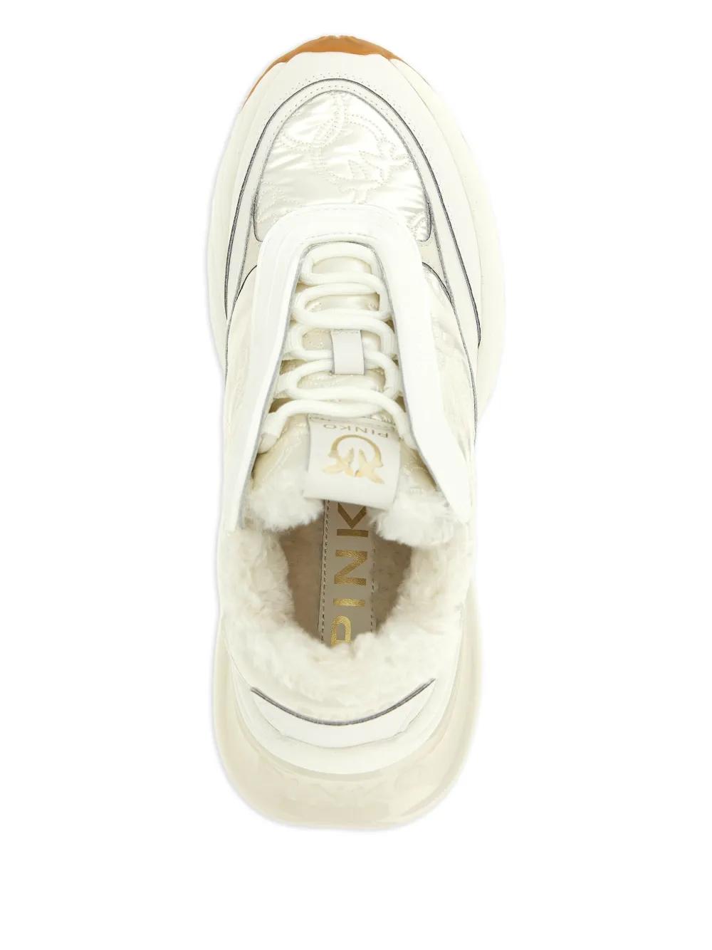 white quilted upper platform sole lace-up closure shearling trim embossed logo