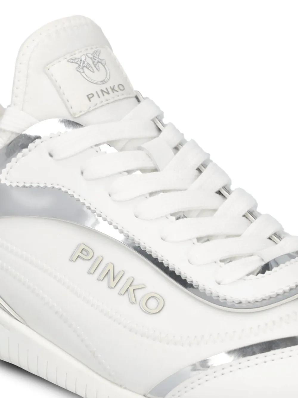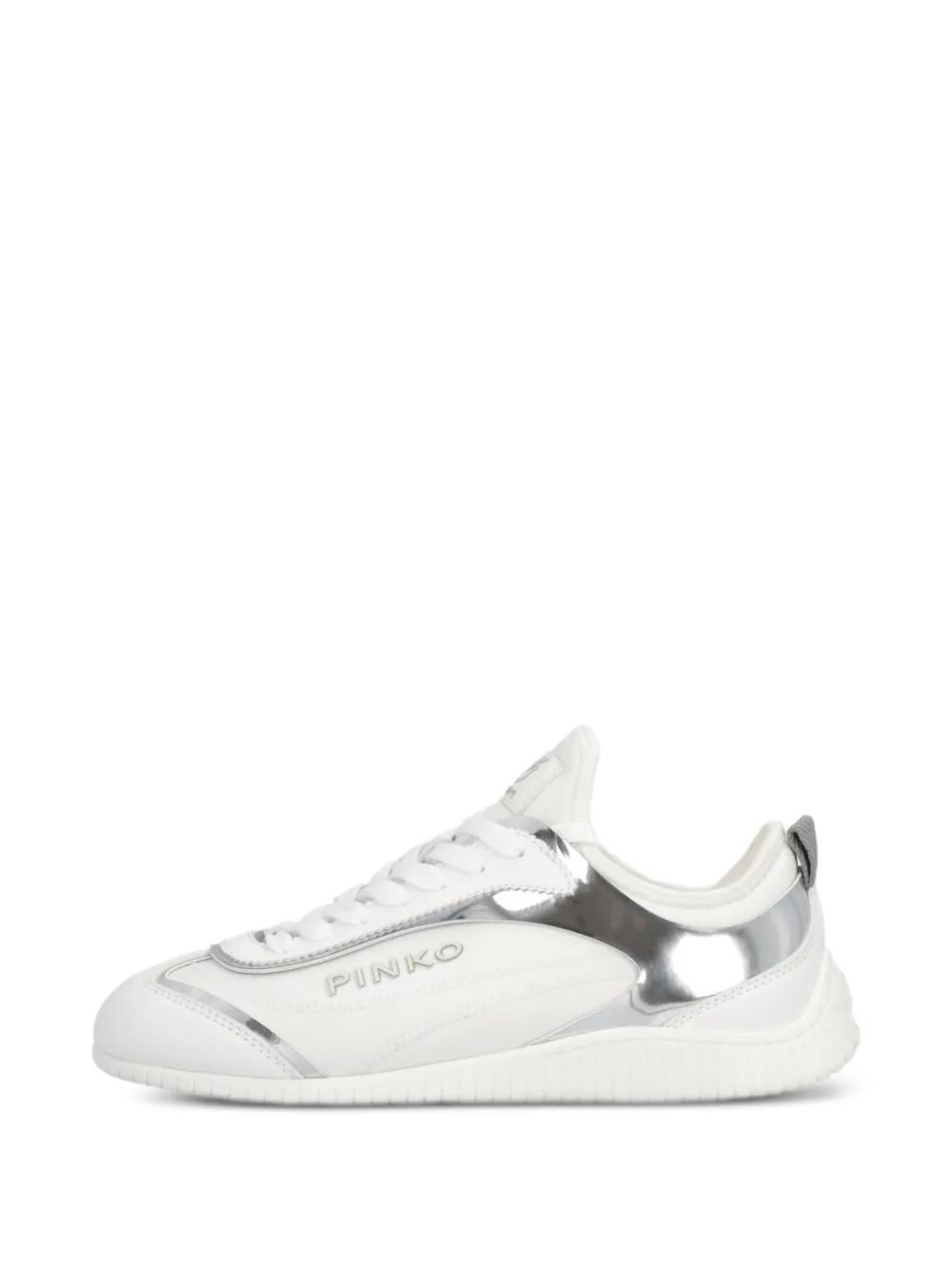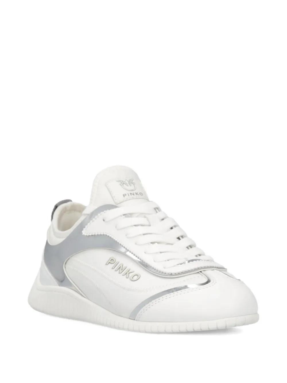 white panelled design logo lettering lace-up fastening pull-tab at the heel ridged sole
