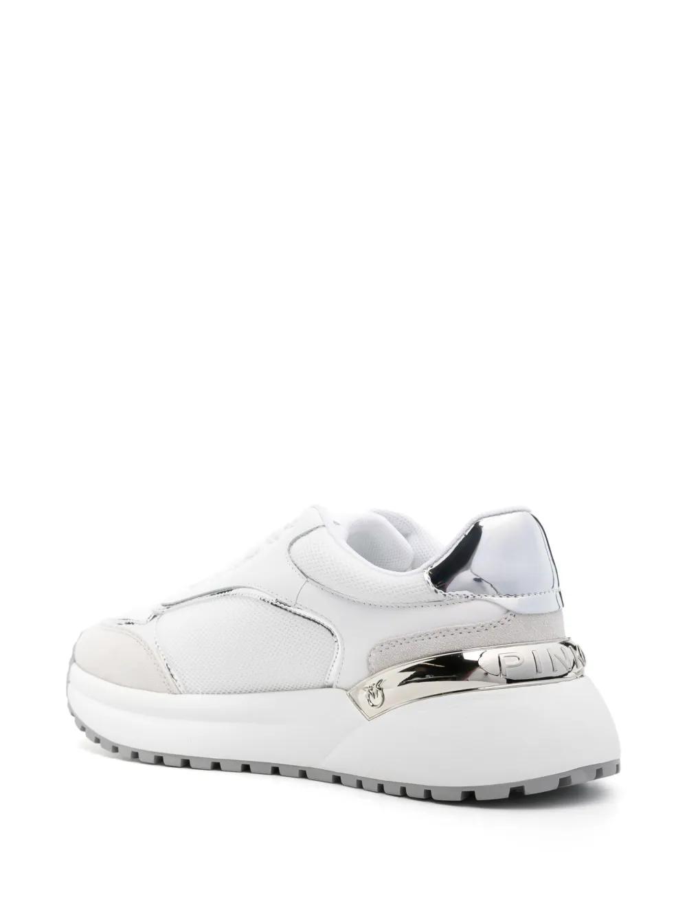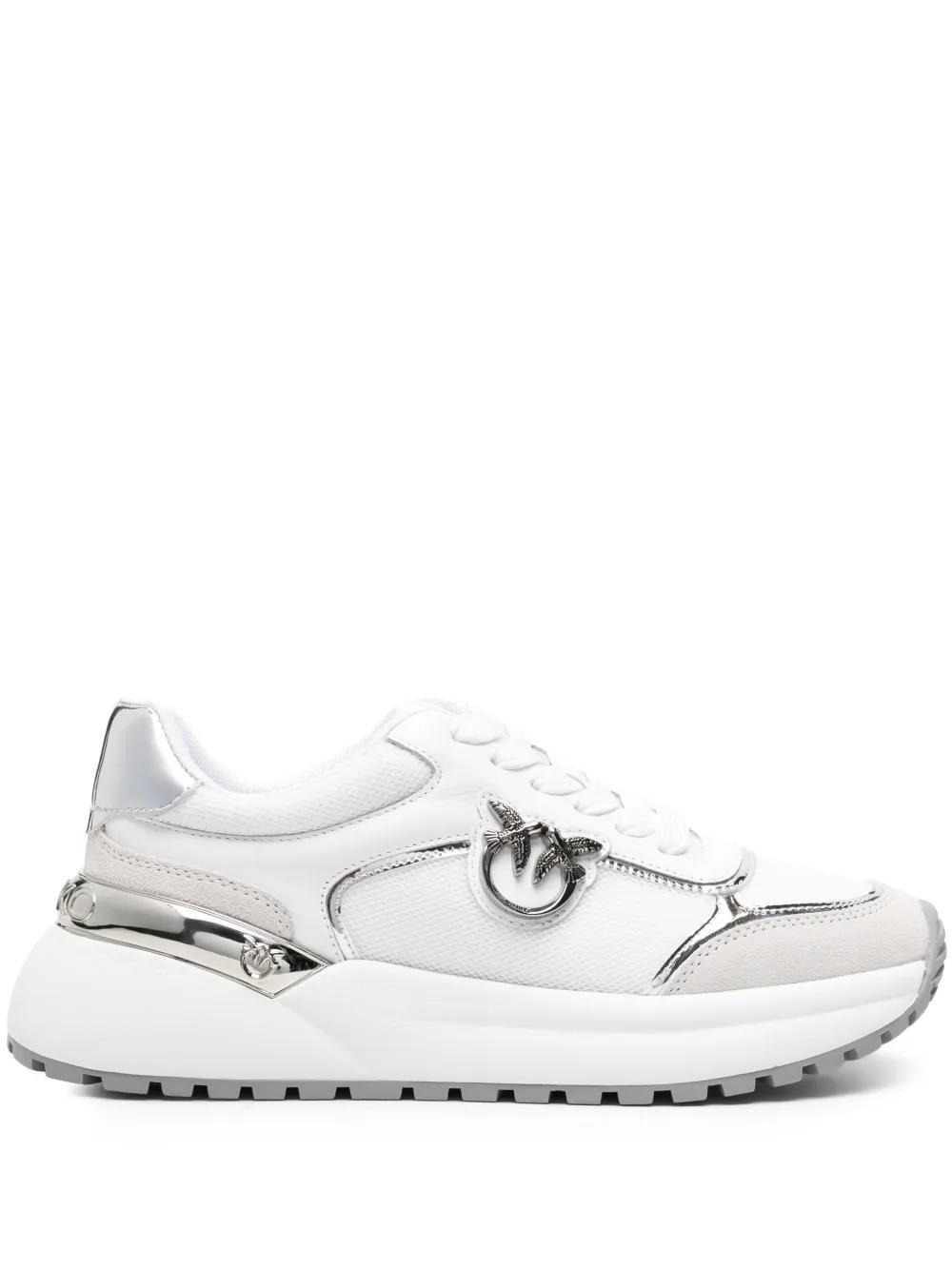 white/silver-tone panelled design mesh detailing logo-debossed tongue signature Love Birds plaque contrasting heel counter embossed logo at the sole mirrored trim round toe front lace-up fastening branded leather insole chunky rubber sole