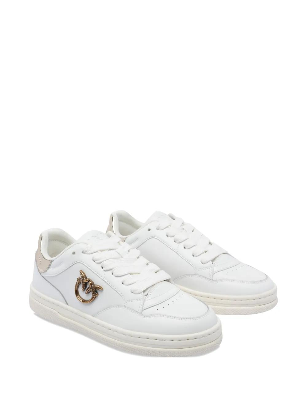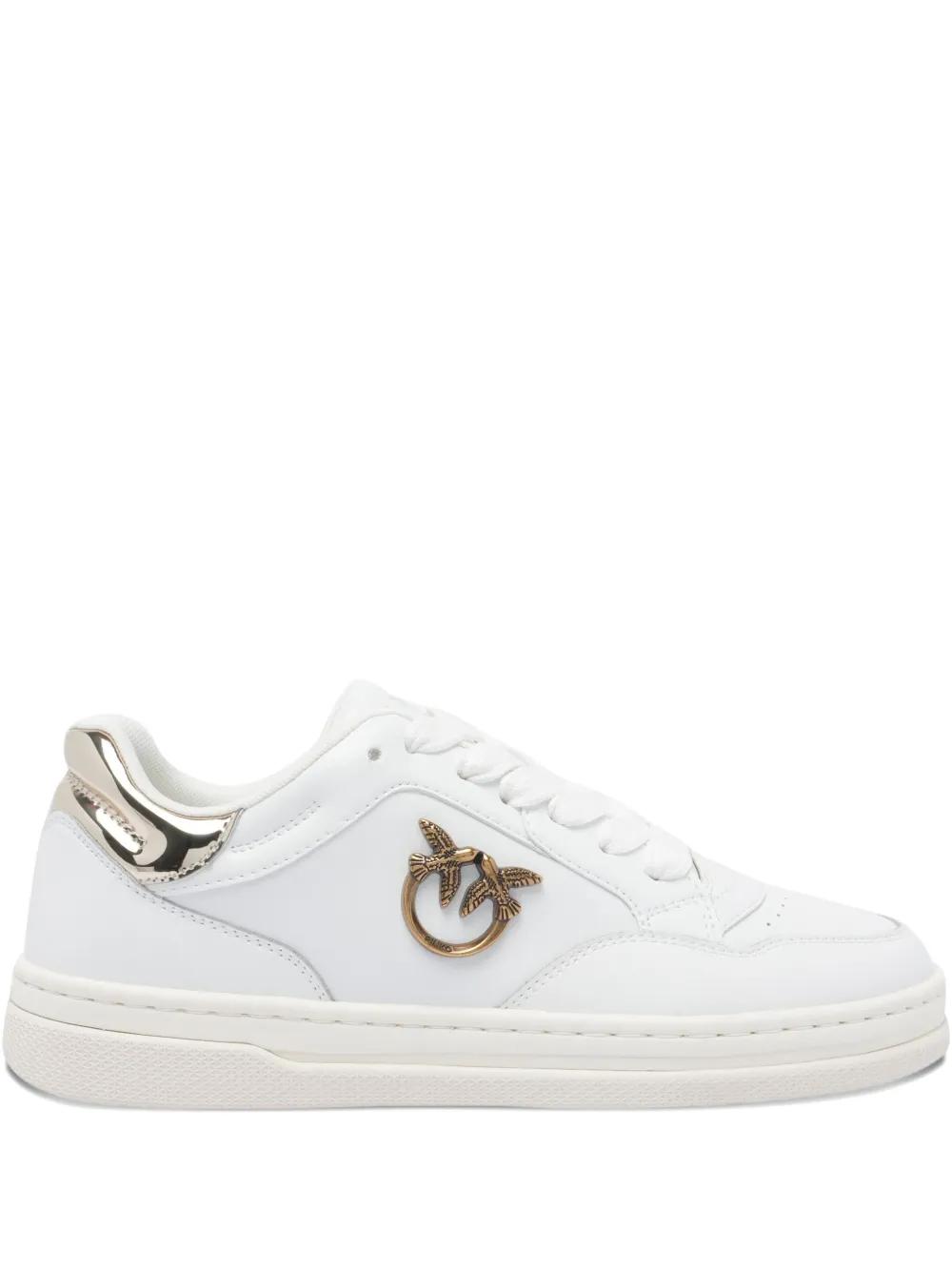 white leather upper metallic heel-panel lace-up closure signature Love Birds logo plaque rubber sole