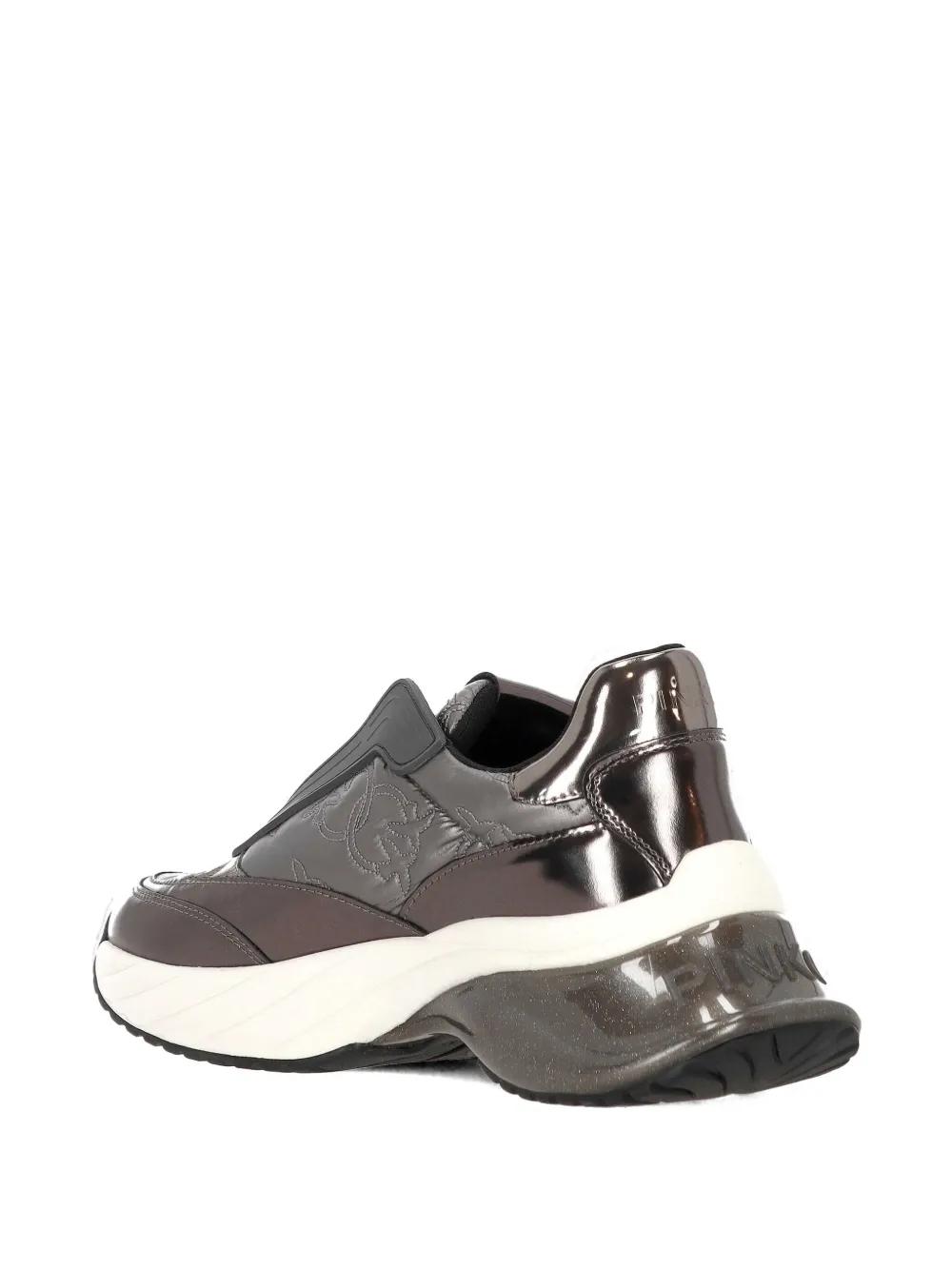 dark grey quilted metallic finish slip-on style chunky sole logo detail