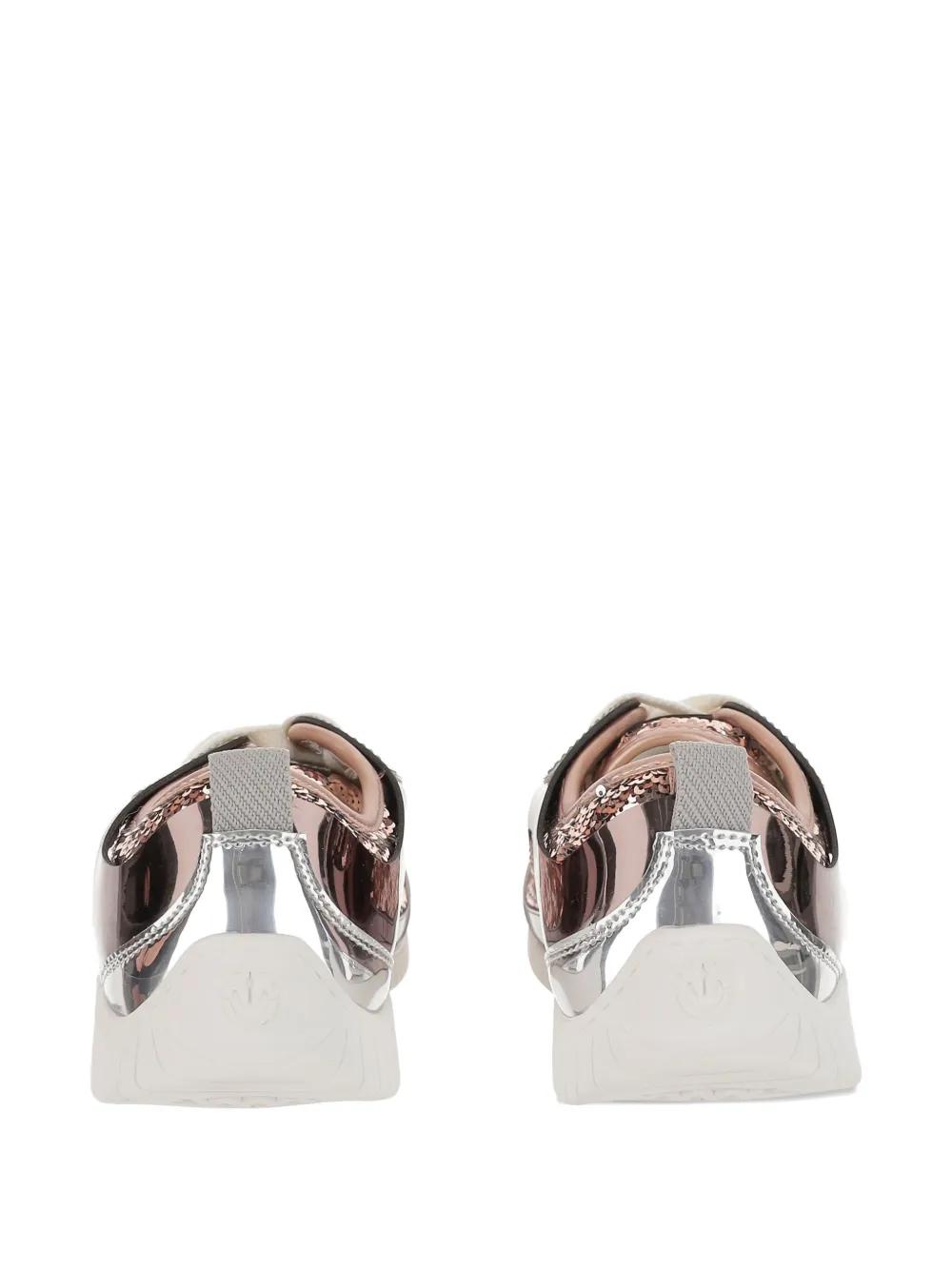 rose gold sequin embellishment metallic leather lace-up fastening flat sole low top design