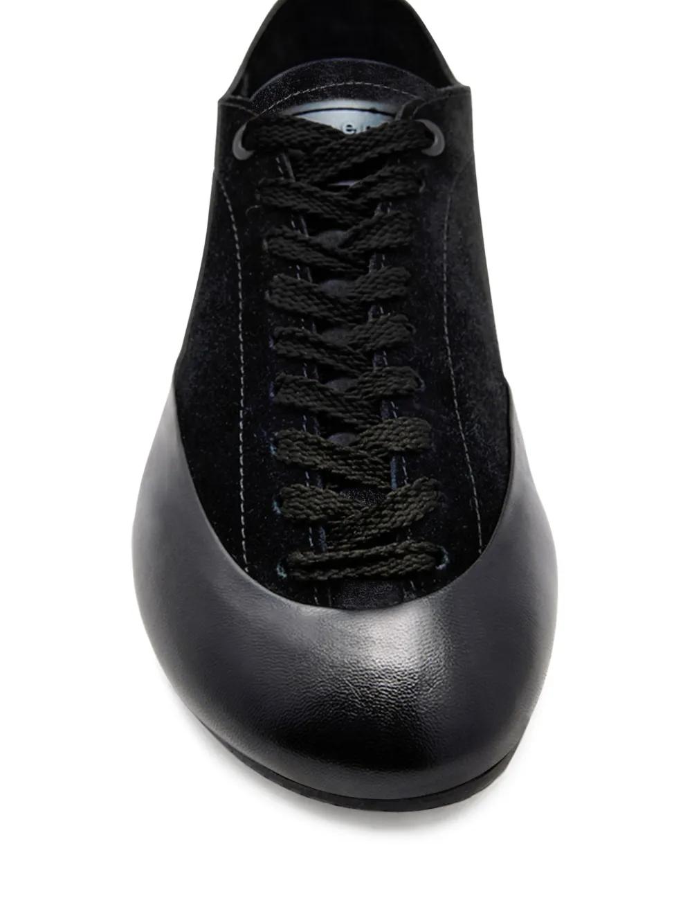 black front lace-up fastening pull-tab at the heel round toe branded insole