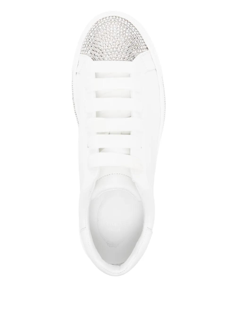 white lace-up fastening crystal embellishment branded footbed round toe