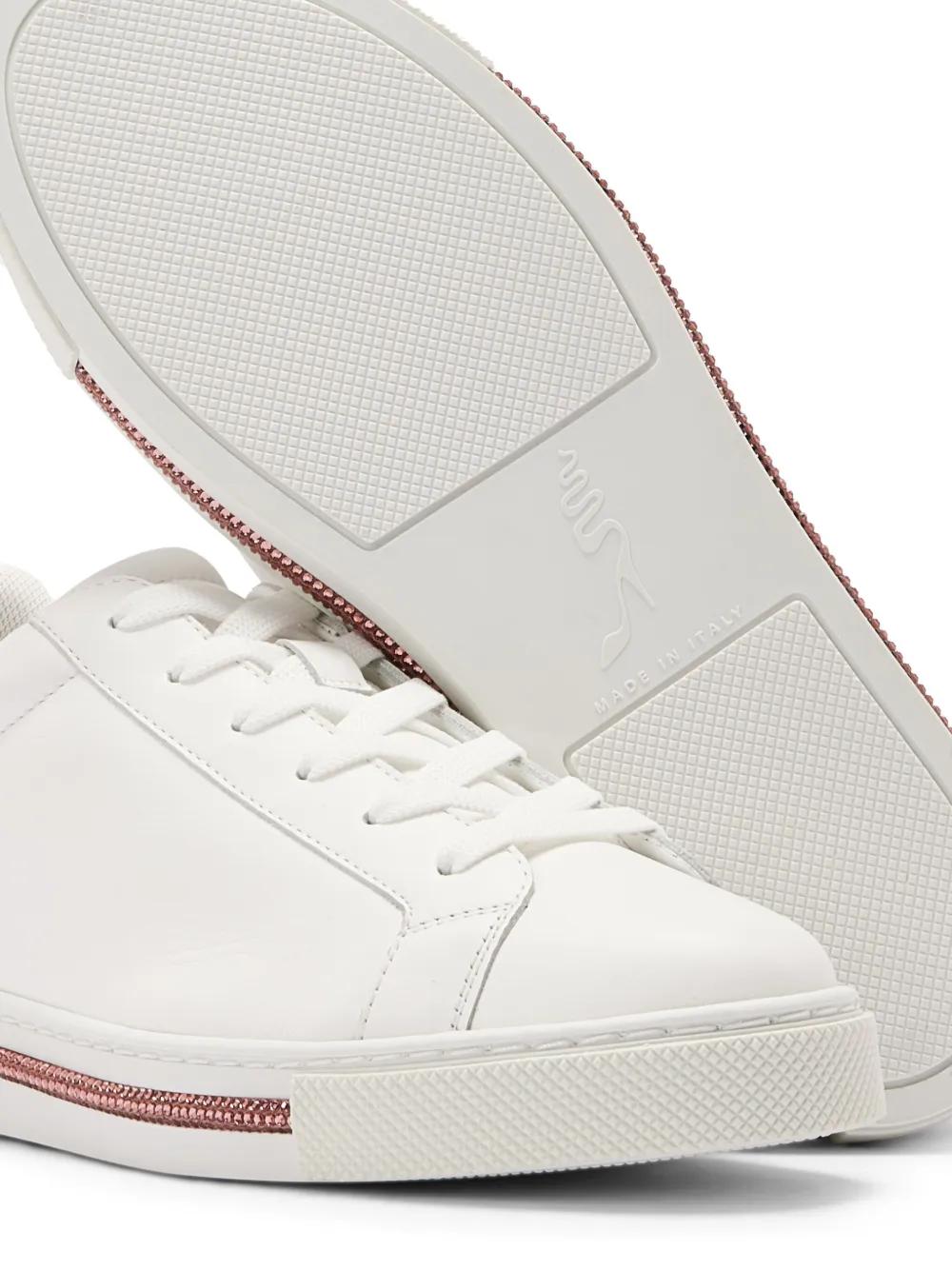 off-white calf leather crystal embellishment contrasting heel counter round toe front lace-up fastening branded insole flat rubber sole