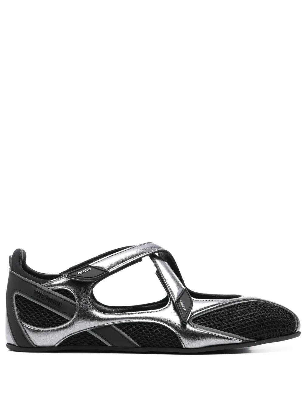 black front lace-up fastening branded leather insole mesh panelling round toe
