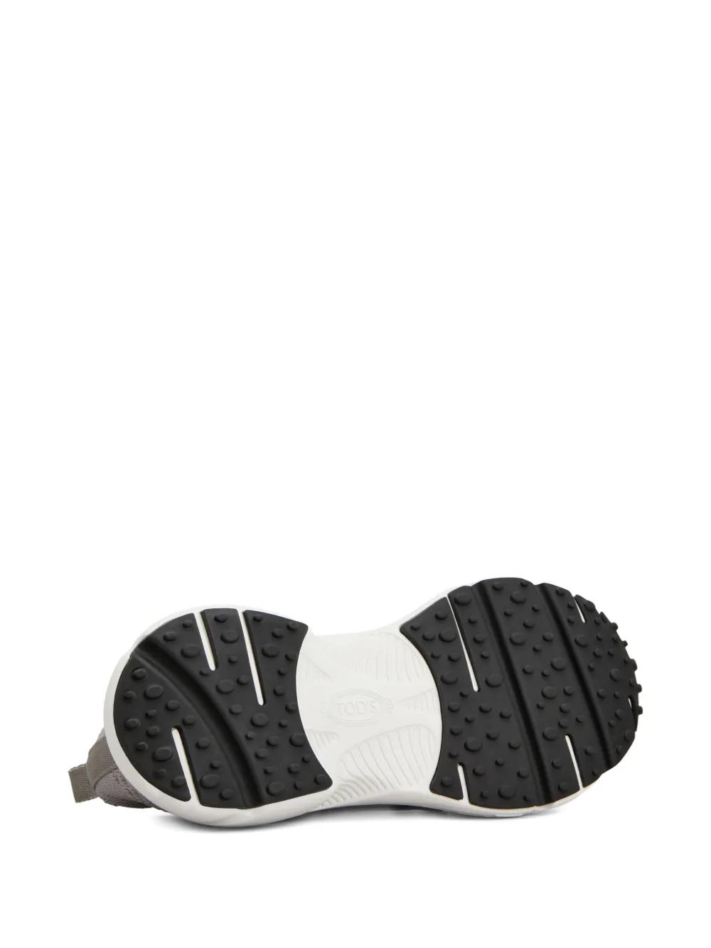 light beige suede panelling mesh inserts lace-up fastening flat rubber sole padded collar