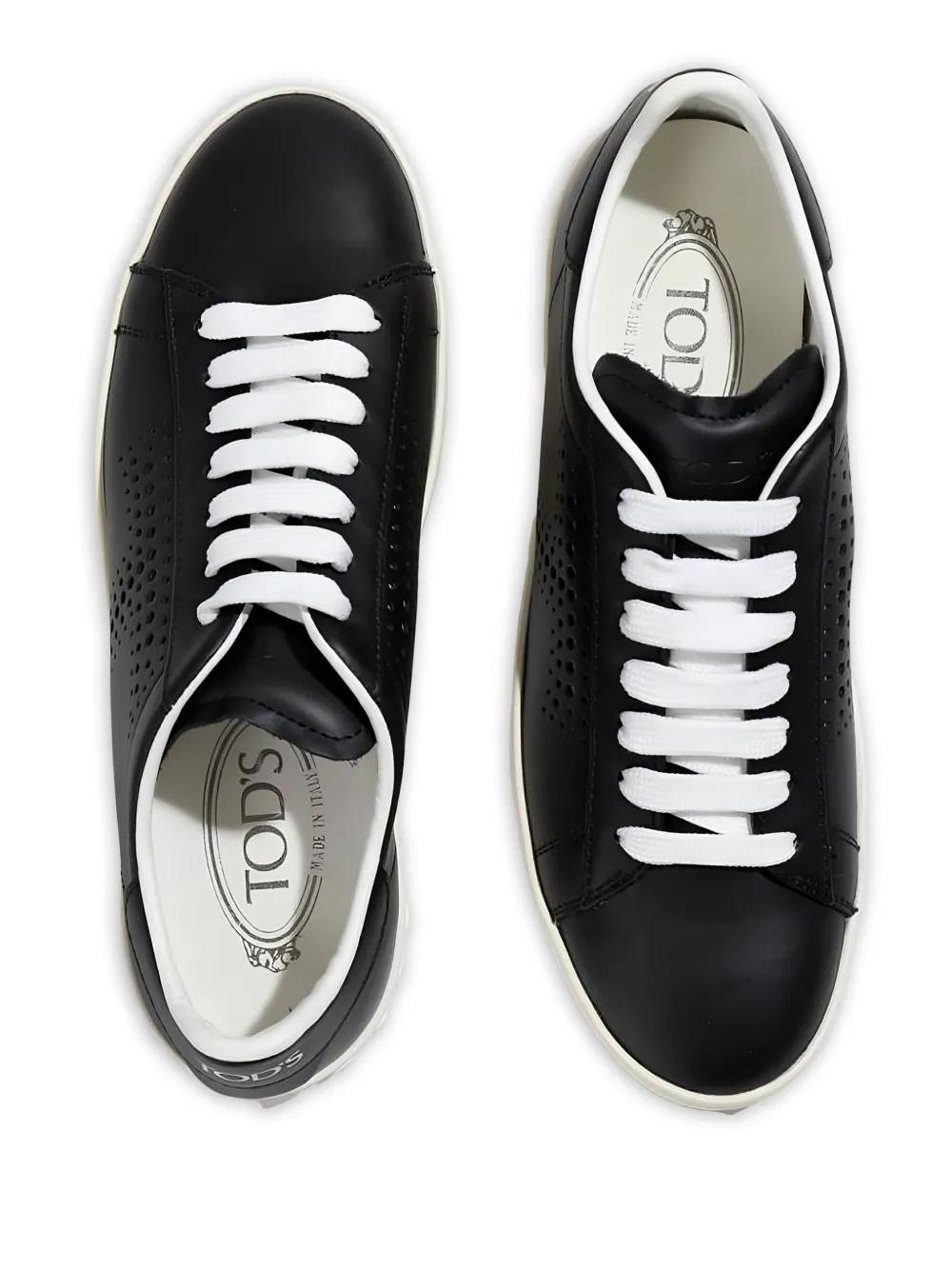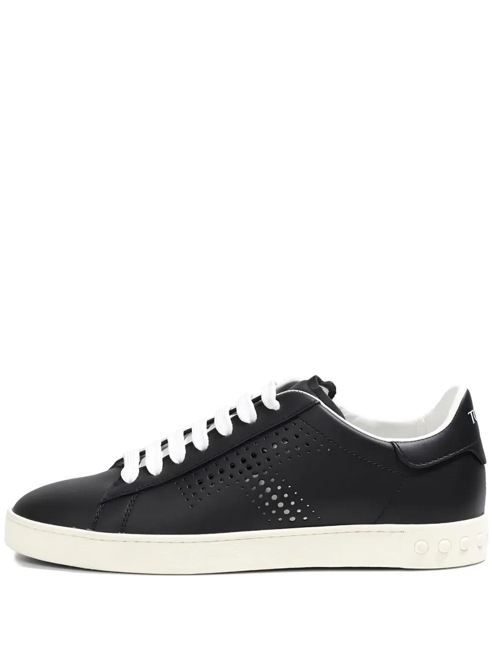 black perforated detail lace-up fastening logo at the back round toe rubber sole