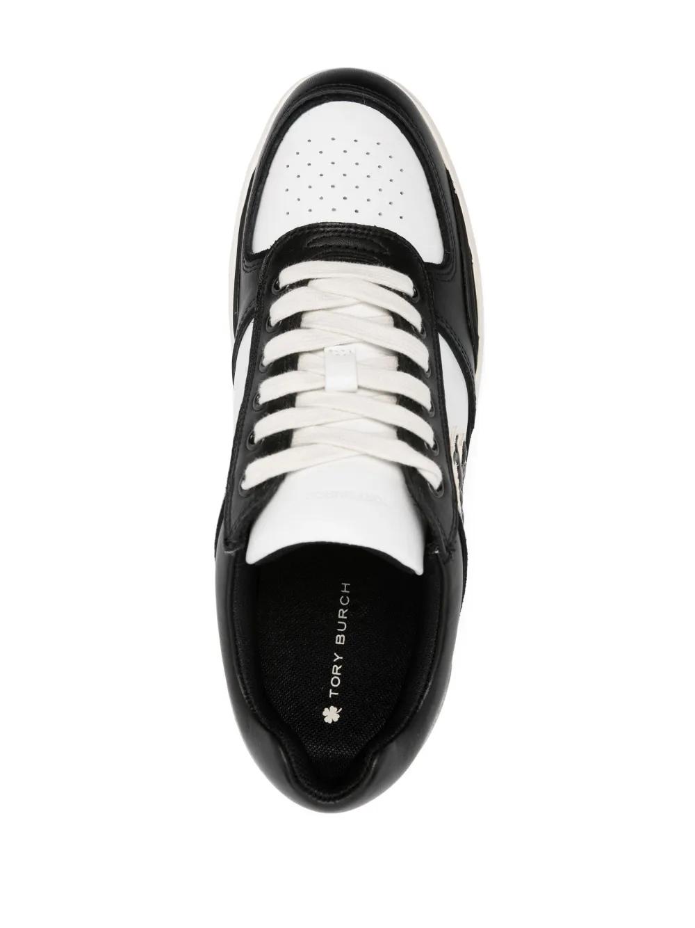 jet black/optical white calf leather colour-block panelled design signature Double T motif logo patch to the side logo-debossed tongue embossed logo to the rear perforated toebox EVA midsole round toe front lace-up fastening branded insole flat rubber sole mesh lining