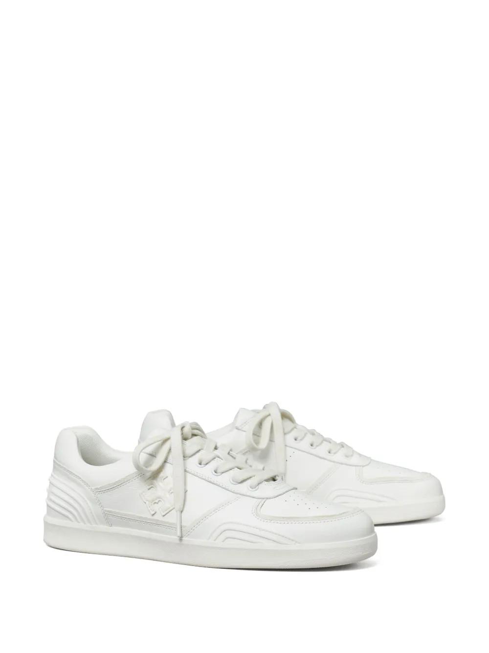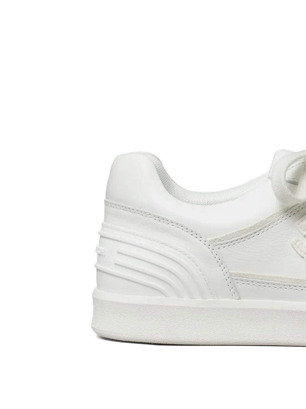 optical white nappa leather perforated toebox logo patch to the side embossed logo to the rear round toe front lace-up fastening branded insole flat rubber sole