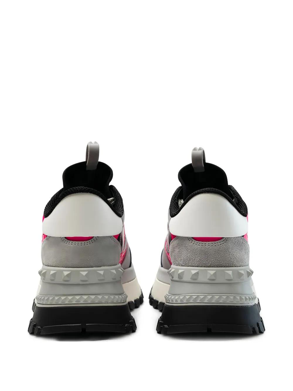 grey camouflage pattern platform sole pull-tab at the opening lace-up fastening studded detail