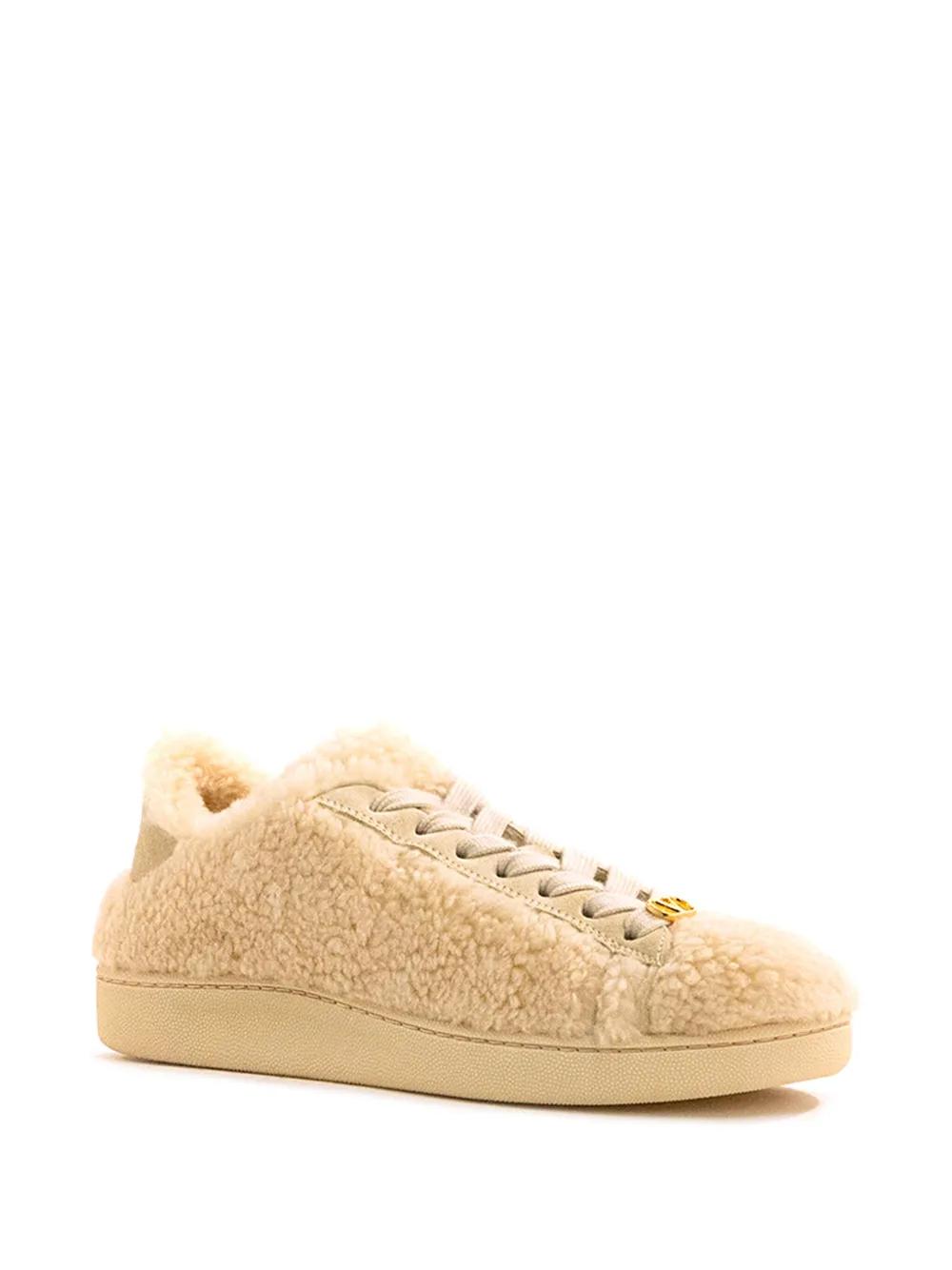 beige lace-up fastening VLogo Signature round toe flat rubber sole