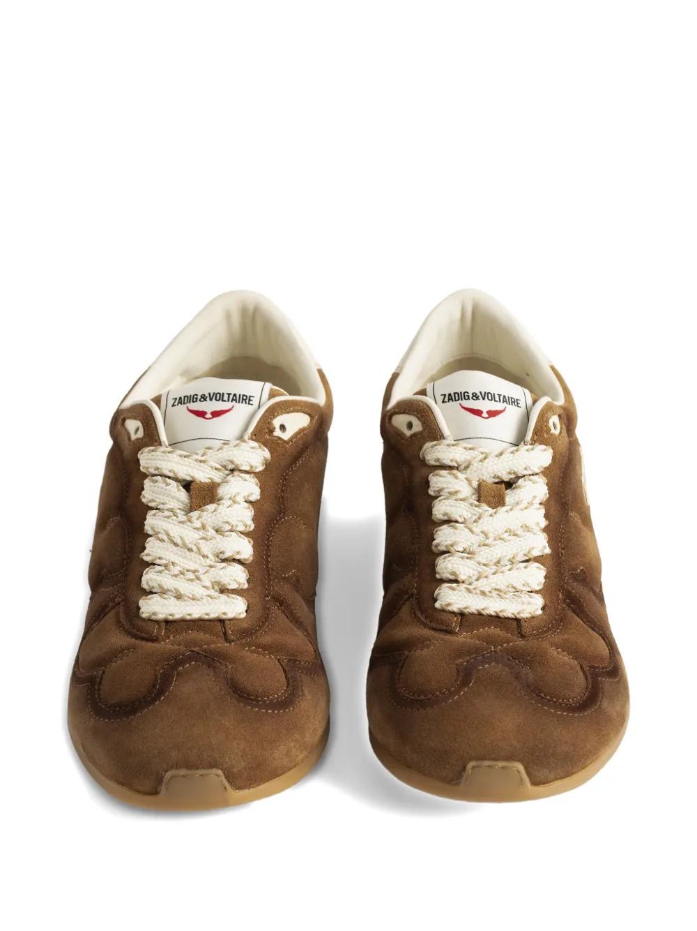 brown suede texture lace-up fastening topstitching rubber sole logo detail