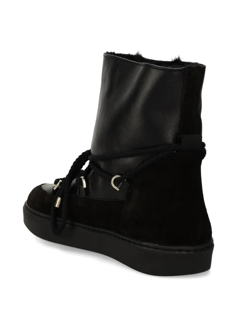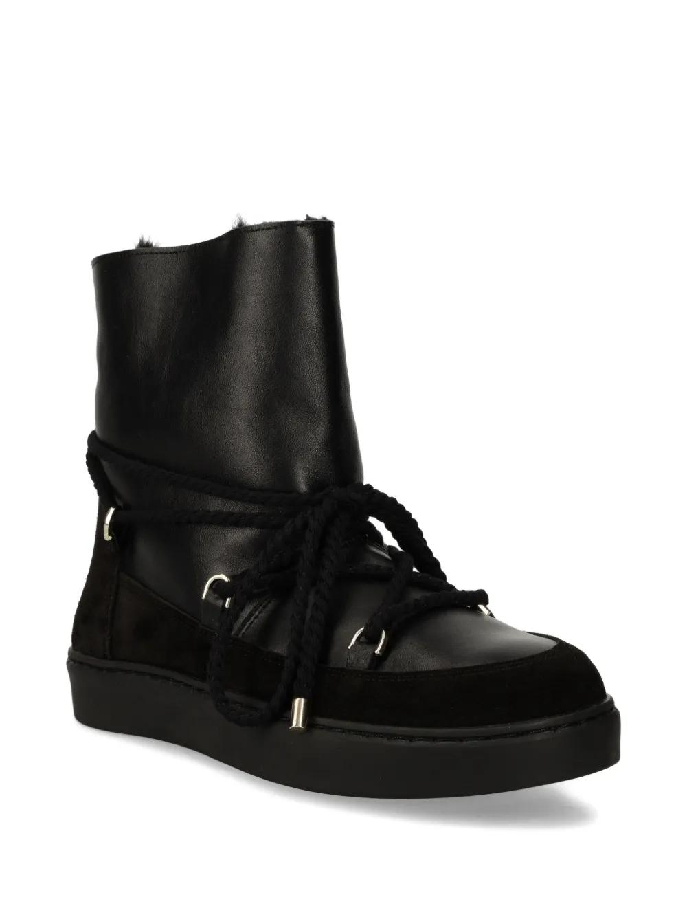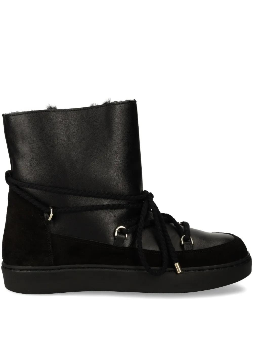 black leather upper suede inserts lace-up fastening flat rubber sole