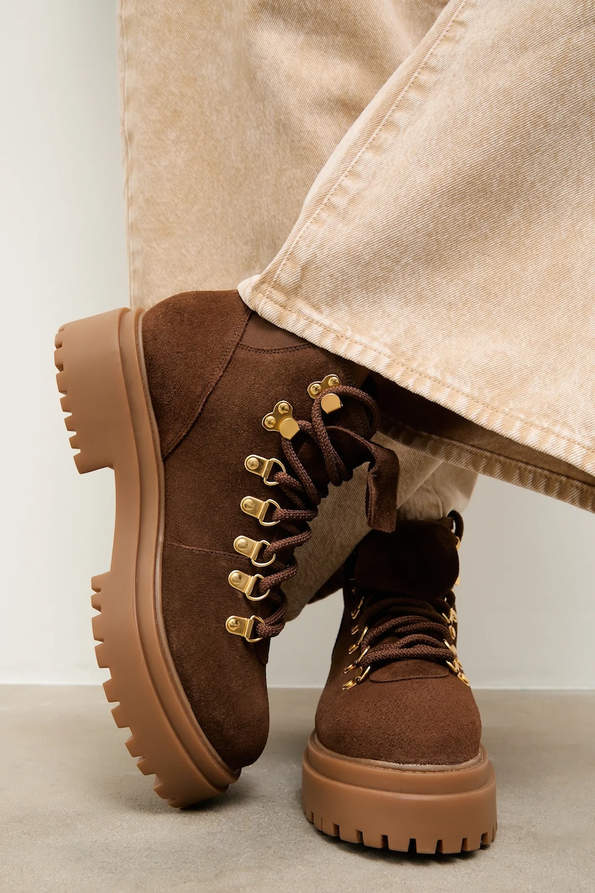 Answear.LAB botki zamszowe kolor brązowy na platformie
