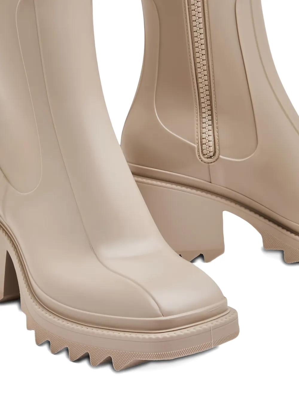 beige block heel side zip fastening pull tab at the heel round toe branded insole