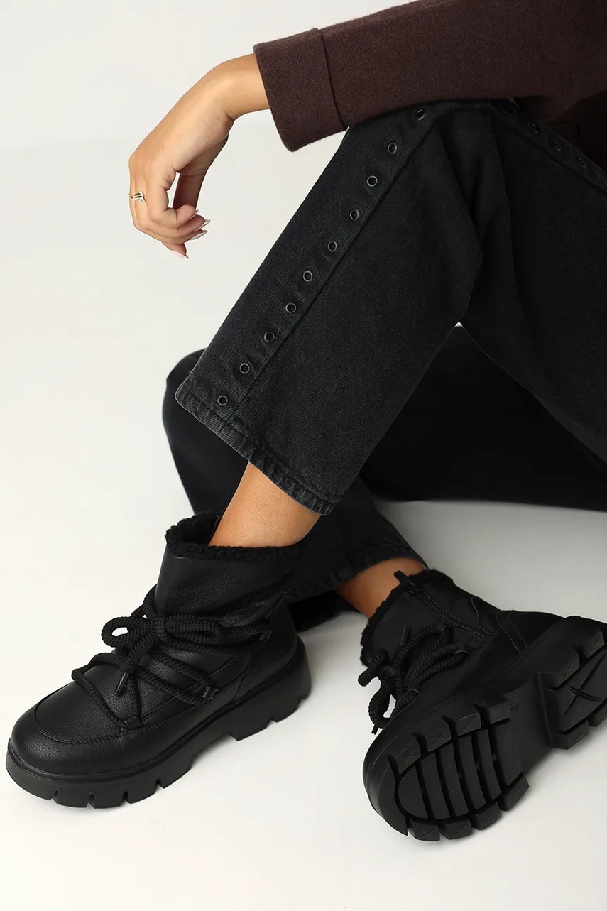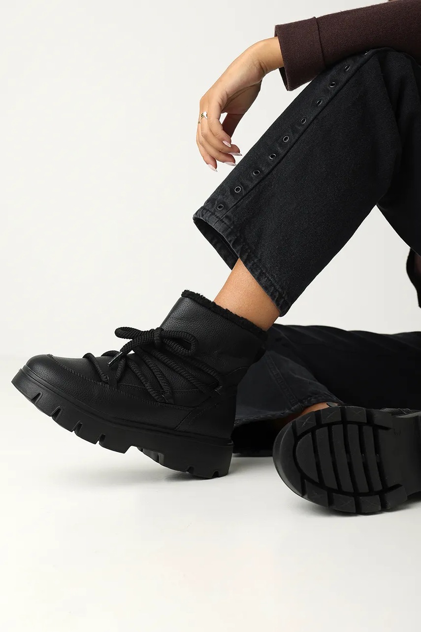 - Okrągły nosek. - Model na płaskim obcasie. - Gumowa podeszwa zewnętrzna jest wytrzymała i odporna na uszkodzenia. - Lekko ocieplony model. - Sznurowany model.