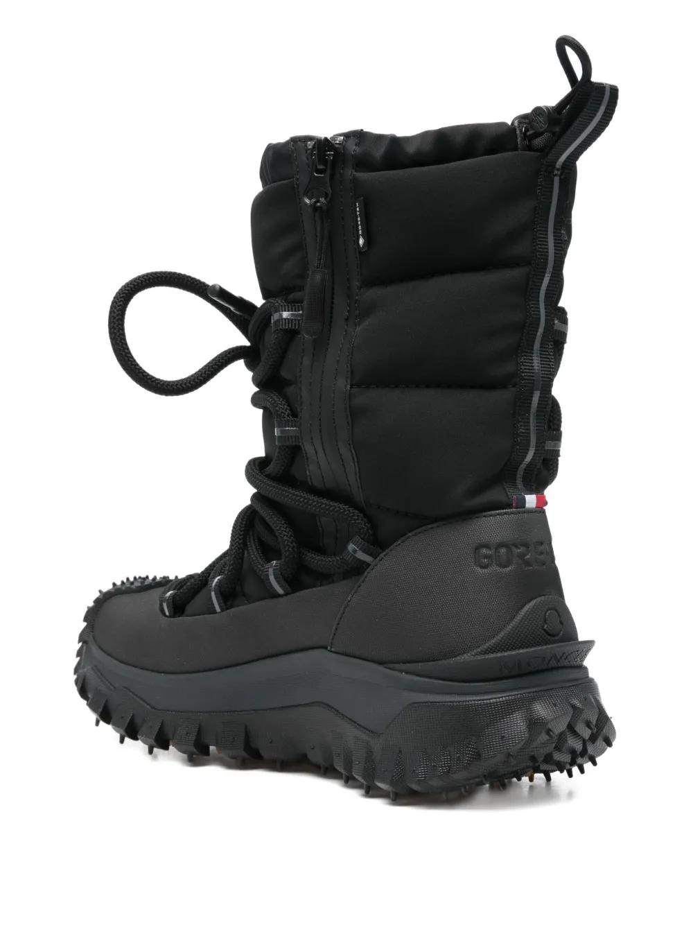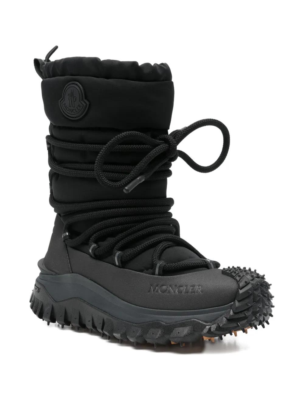 black lace-up fastening pull-tab at the heel ridged rubber sole round toe logo patch