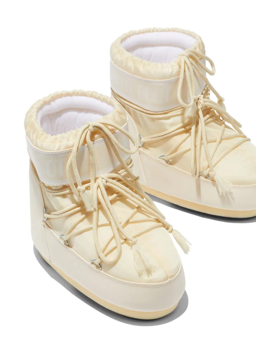 cream/white padded design front lace-up fastening round toe logo print embellishment silver-tone hardware D-ring buckle belt rubber outsole