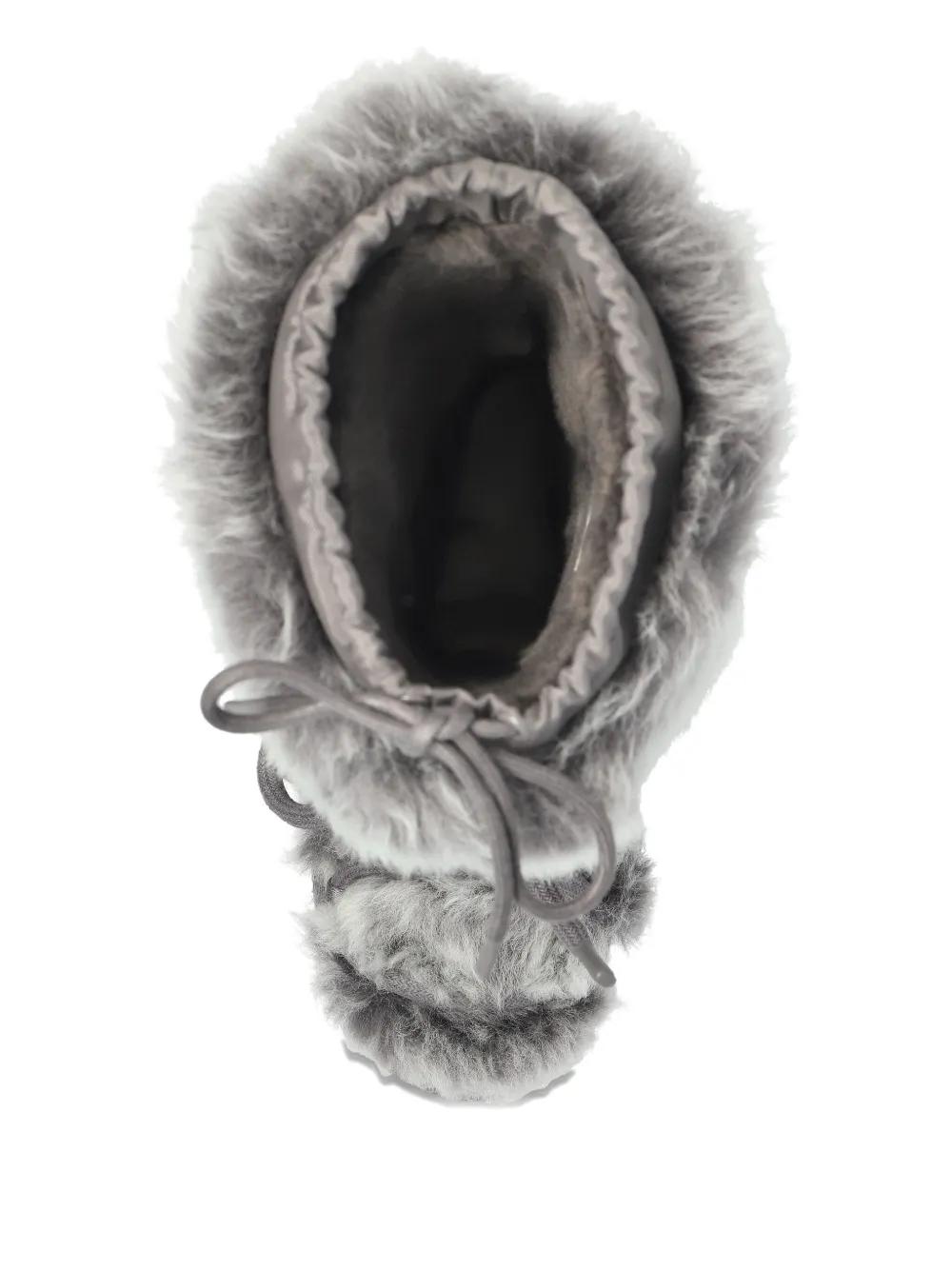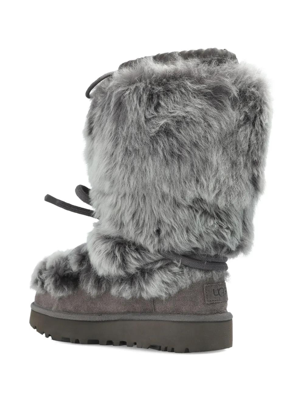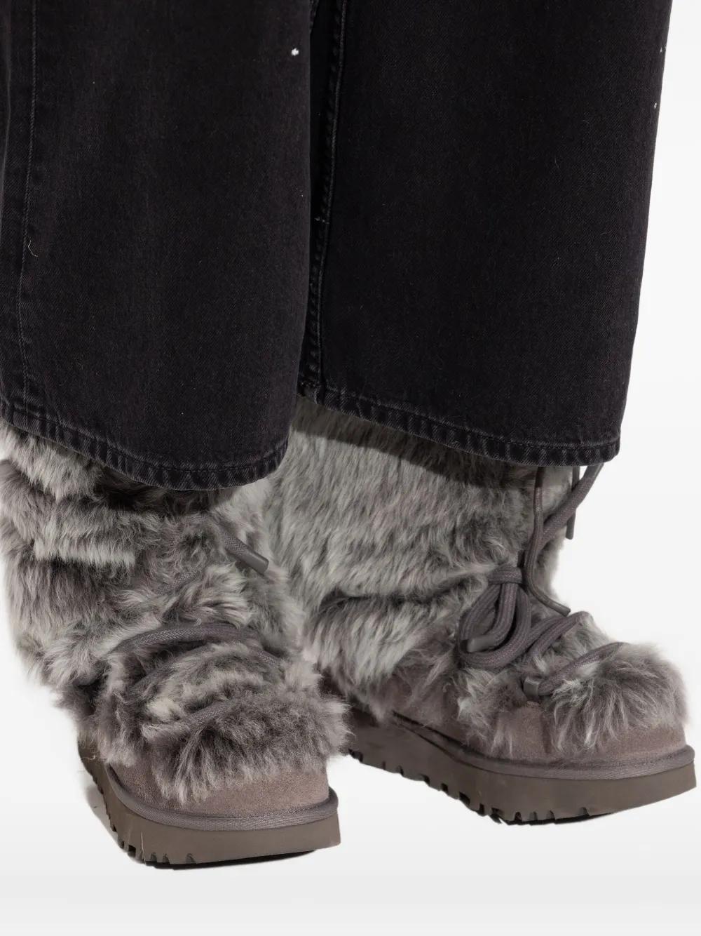 charcoal fur trim lace-up fastening ridged rubber sole round toe