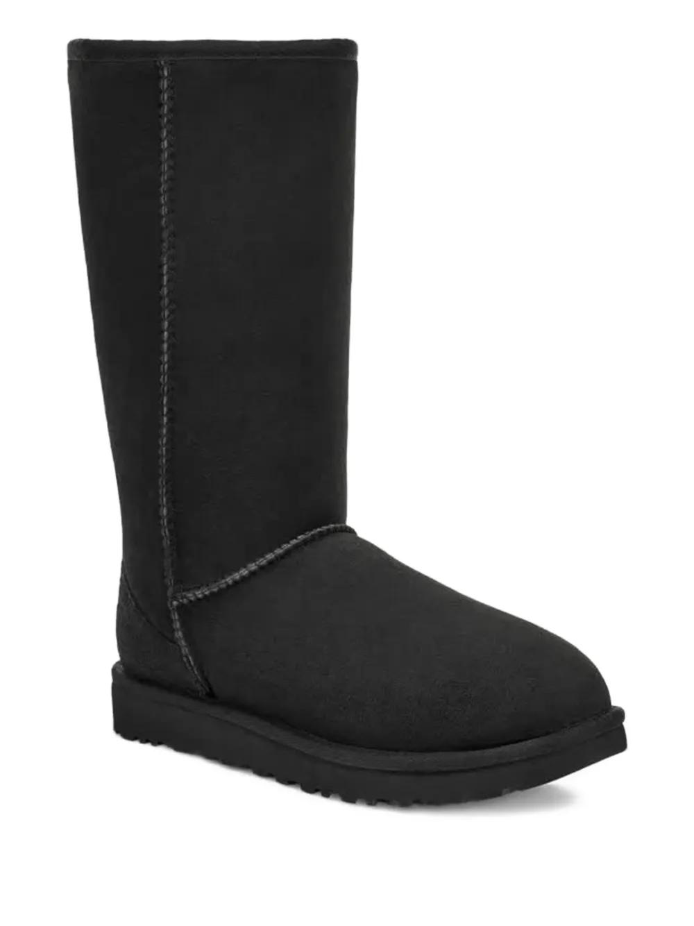 Black lamb fur and suede black rubber sole signature UGGplush™ lining logo patch to the rear