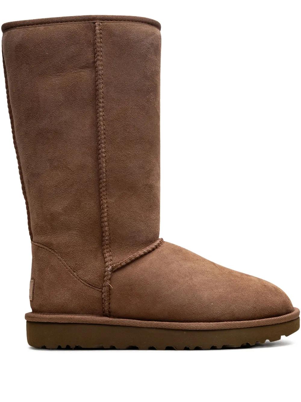 chestnut brown branded heel counter round toe shearling lining rubber sole