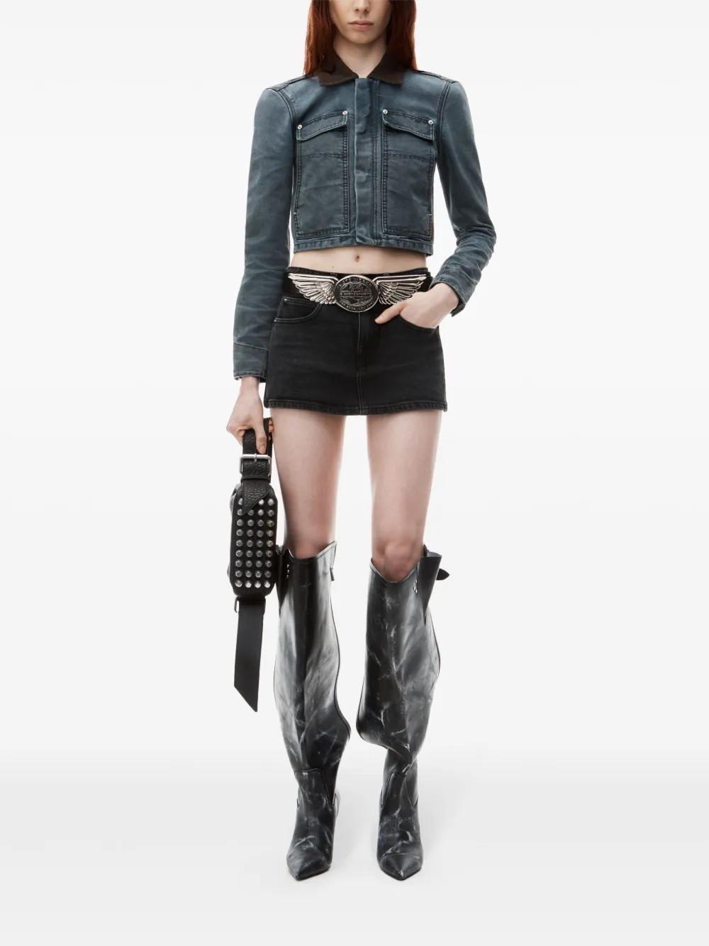 black cotton-lyocell blend denim logo patch to the rear mid-rise belt loops concealed fly and button fastening classic five pockets straight hem