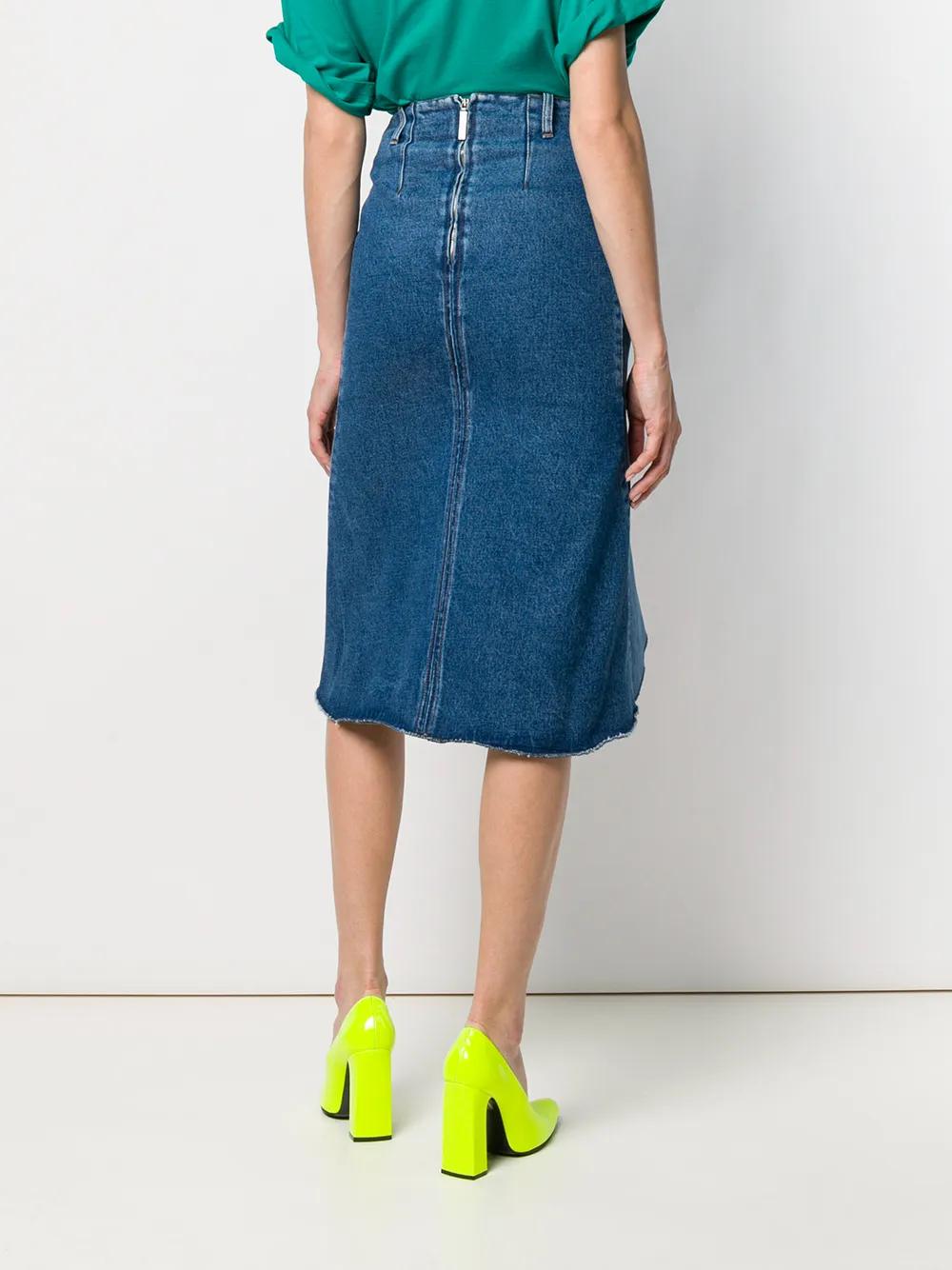 When it comes to Balenciaga, unexpected is expected. The brand reassesses the norm and pushes the boundaries of traditional tailoring. Case in point: this blue cotton blend Godet peplum-style skirt. A modern take on a wardrobe staple, Balenciaga's rendition of the classic denim skirt features a high rise, a fitted waist, belt loops, a rear zip fastening, a peplum-style detail to the front and a high-low silhouette.