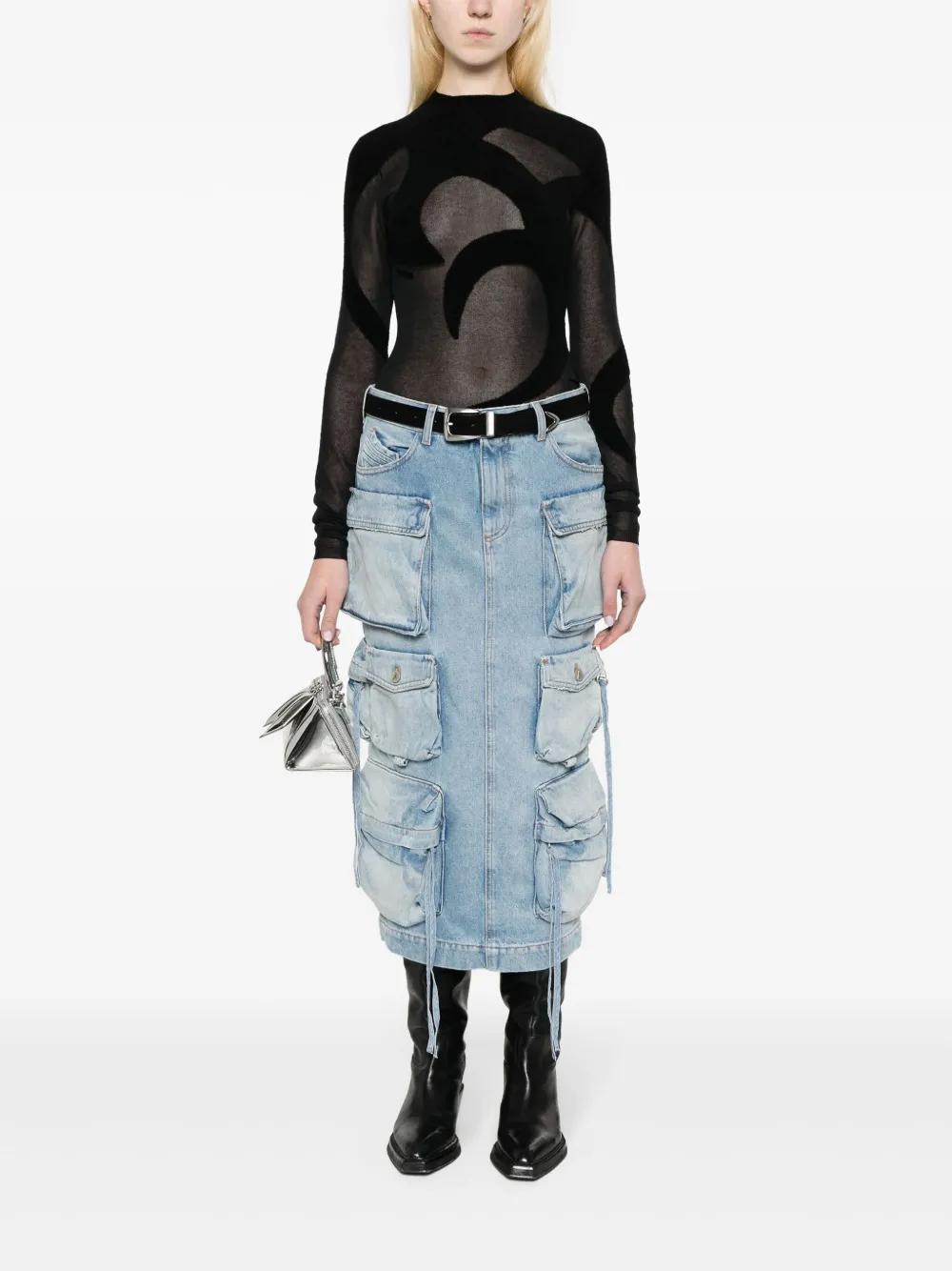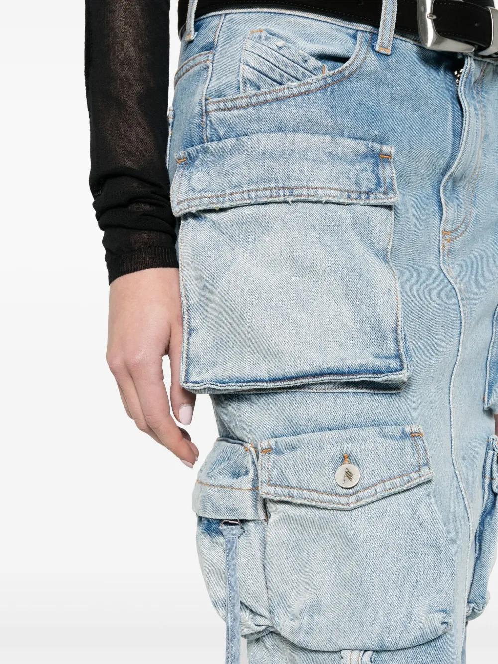 blue cotton belt loops front button and zip fastening classic five pockets multiple cargo pockets straight hem central rear vent