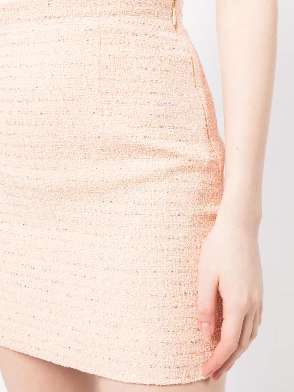 light pink cotton blend tweed sequin embellishment concealed side zip fastening thigh-length