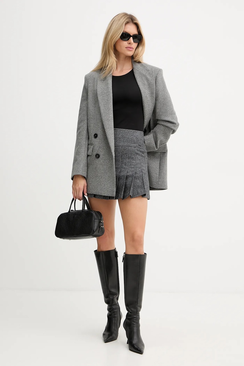 Armani Exchange spódnica z dodatkiem wełny kolor szary mini rozkloszowana XW000694 AF16146