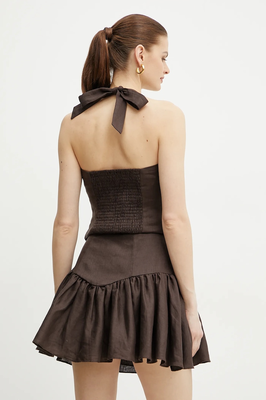 Bardot spódnica lniana AMORETTE kolor brązowy mini rozkloszowana 59864SB2
