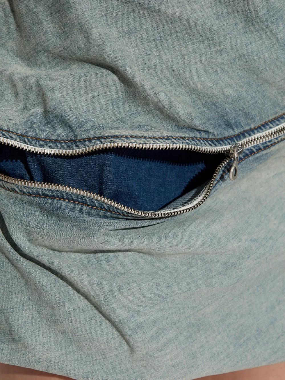 light blue drawstring hem drawstring cuffs zip detail