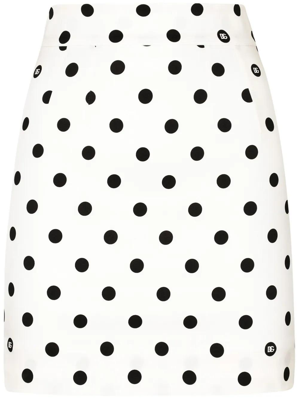 white/black stretch-silk polka dot print high waist concealed rear zip fastening straight hem