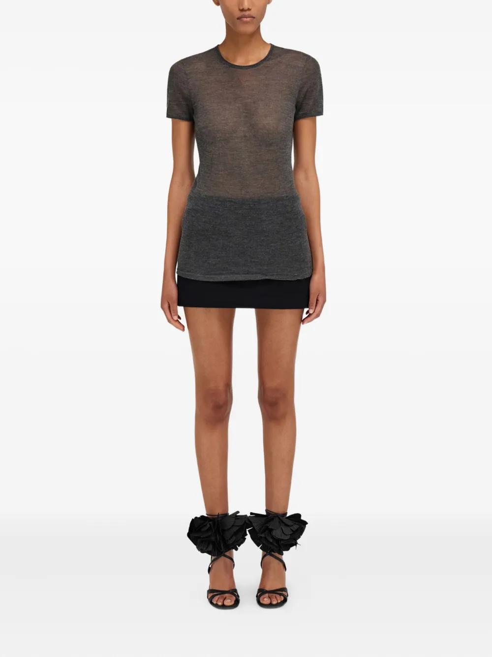 ash grey elasticated waistband two rear button-fastening jetted pockets straight hem thigh-length