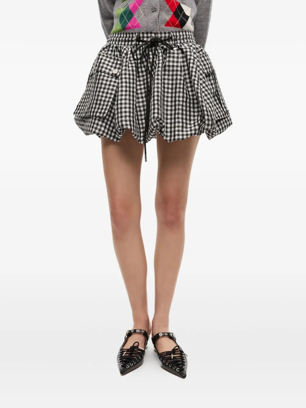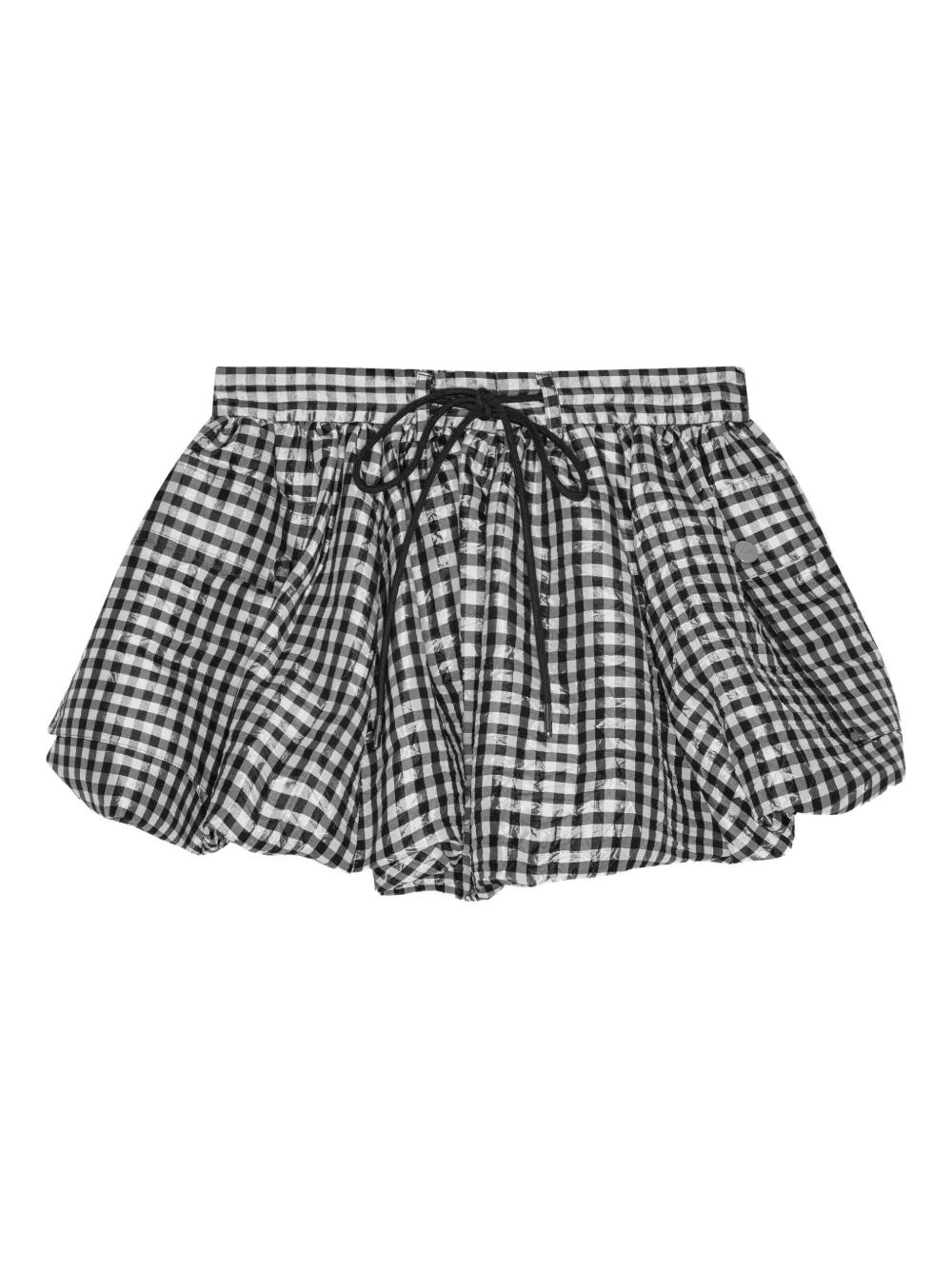 black elasticated drawstring waistband two side flap pockets thigh-length