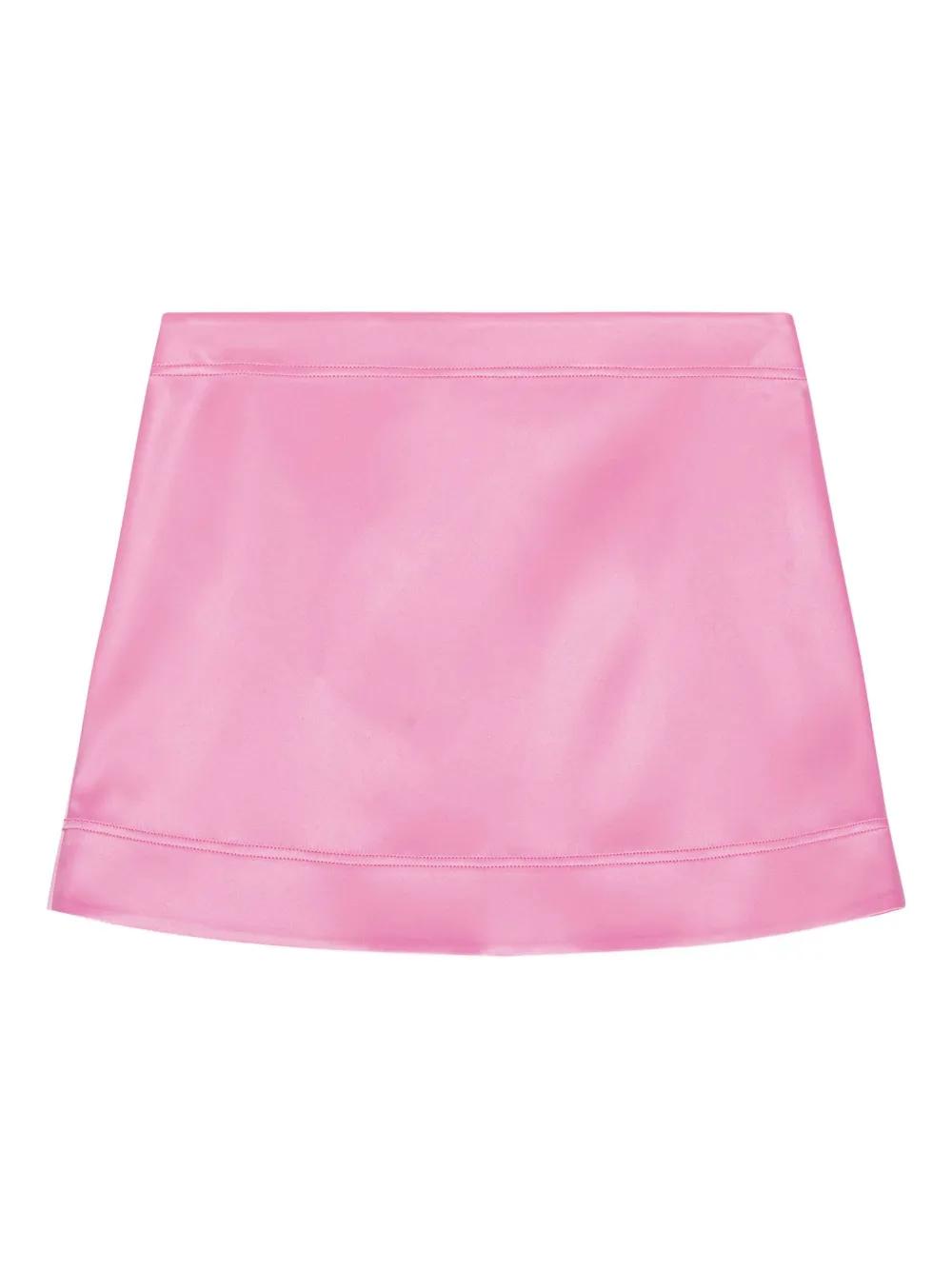 pink satin fabric straight hem A-line shape concealed zip fastening