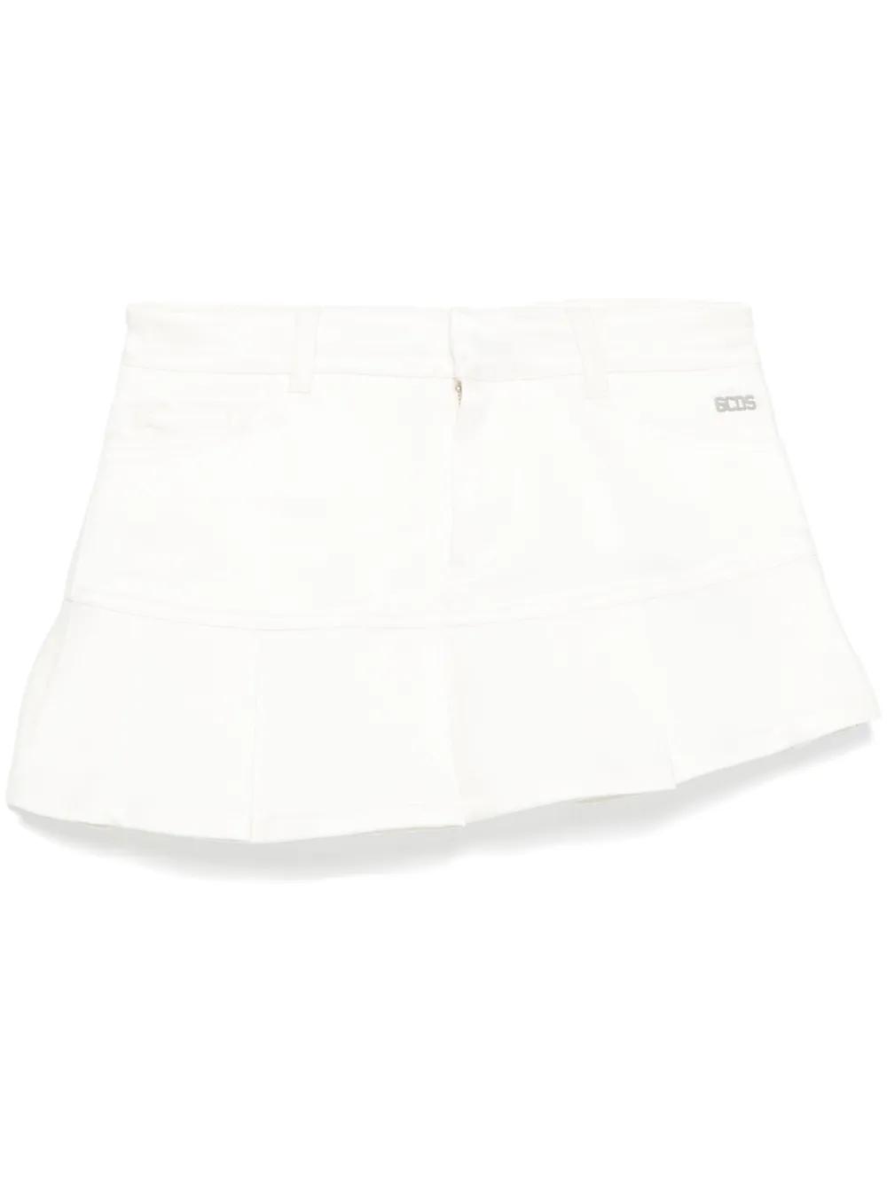 off-white satin finish twill weave logo plaque concealed front button, hook and zip fastening belt loops classic five pockets curved hem thigh-length