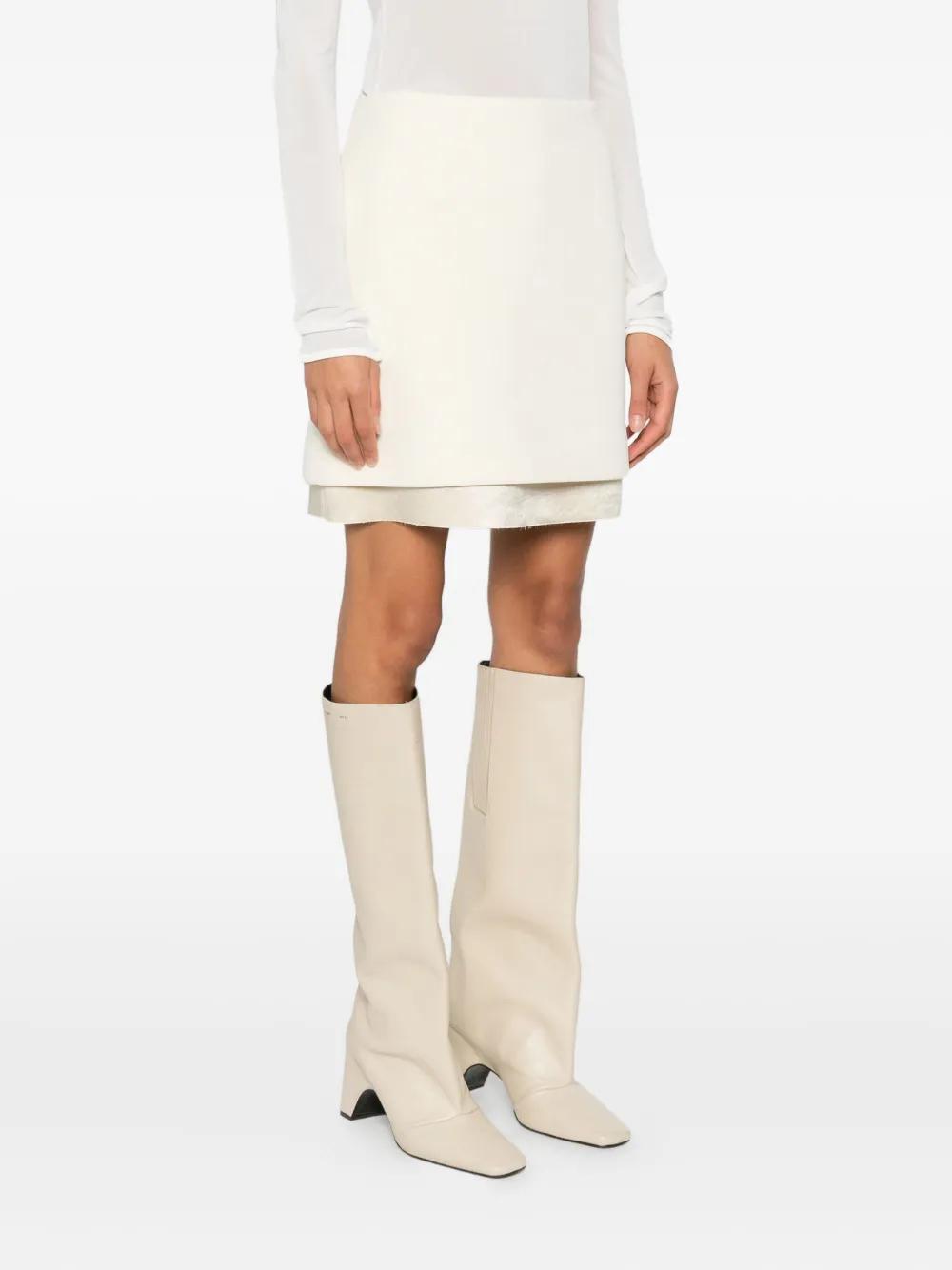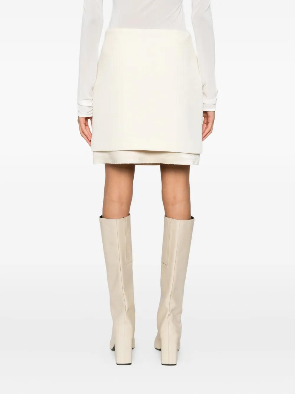- Rozkloszowany fason. - Asymetryczna dolna krawędź. - Model z ozdobnymi falbanami. - Model na podszewce. - Zapięcie na kryty suwak.
